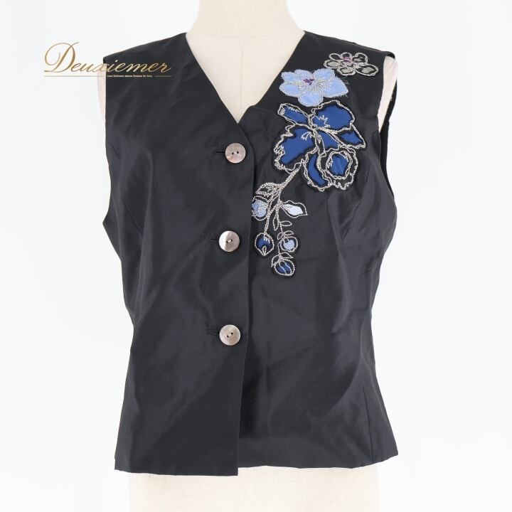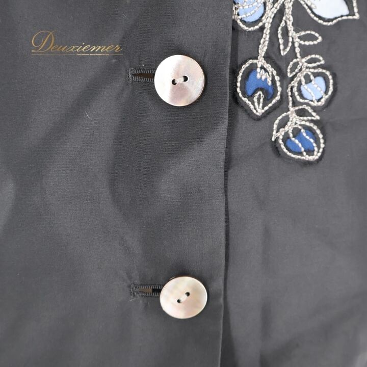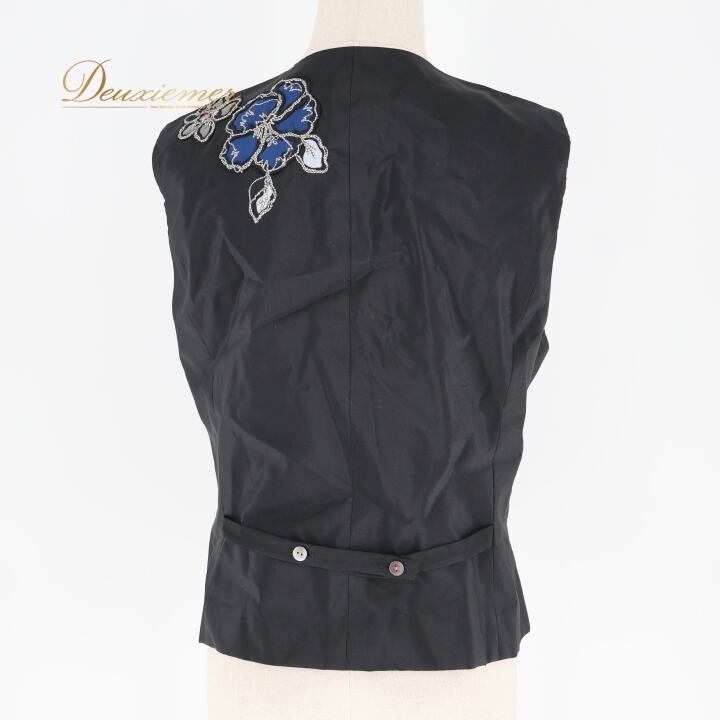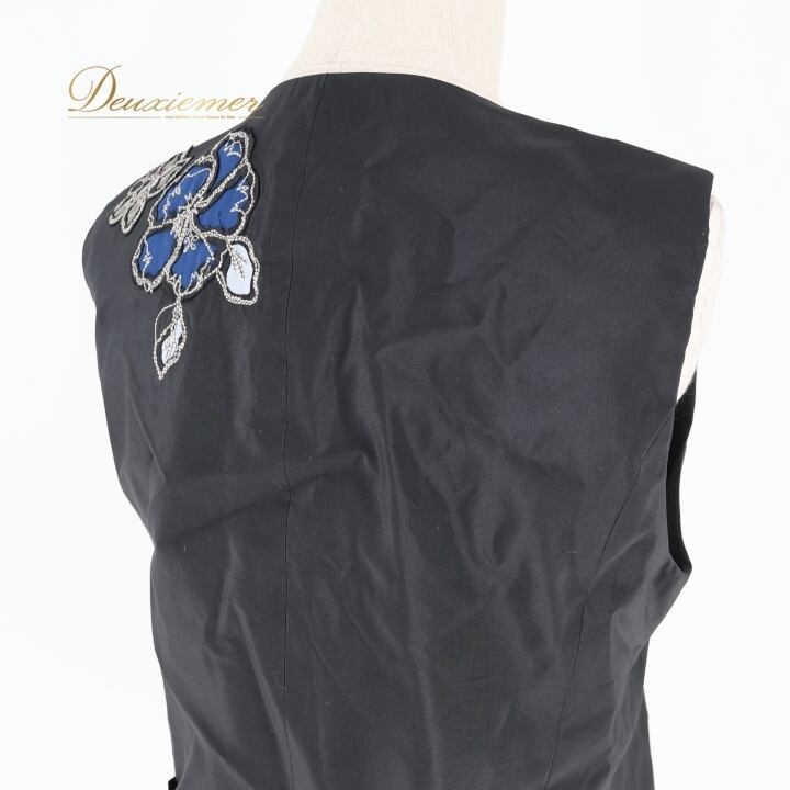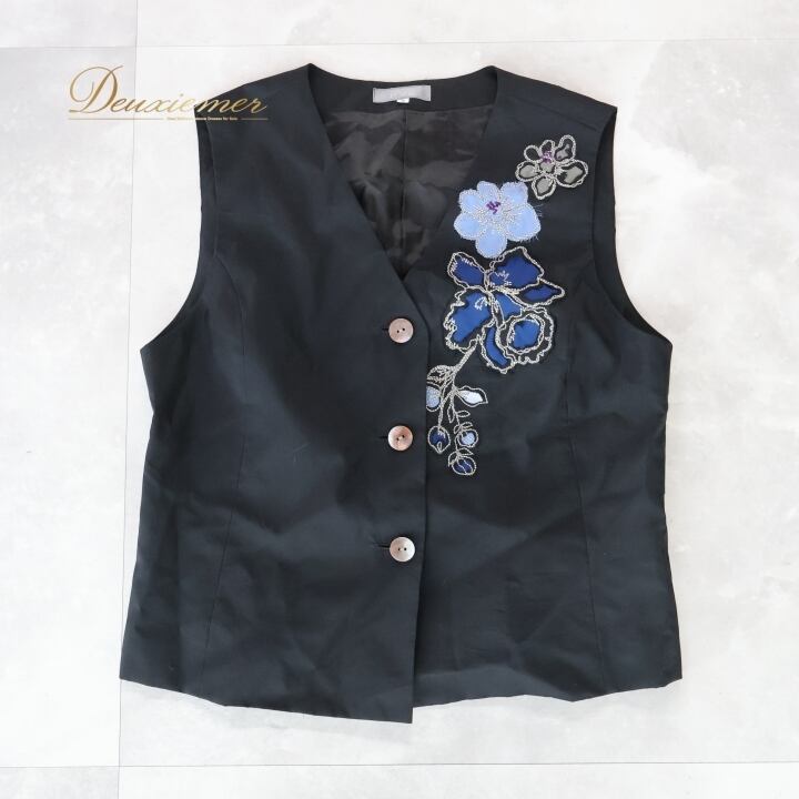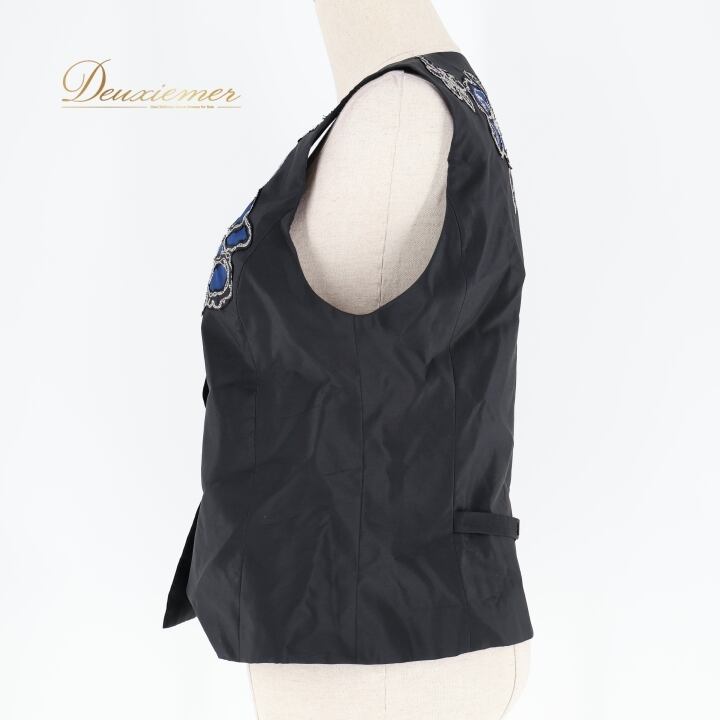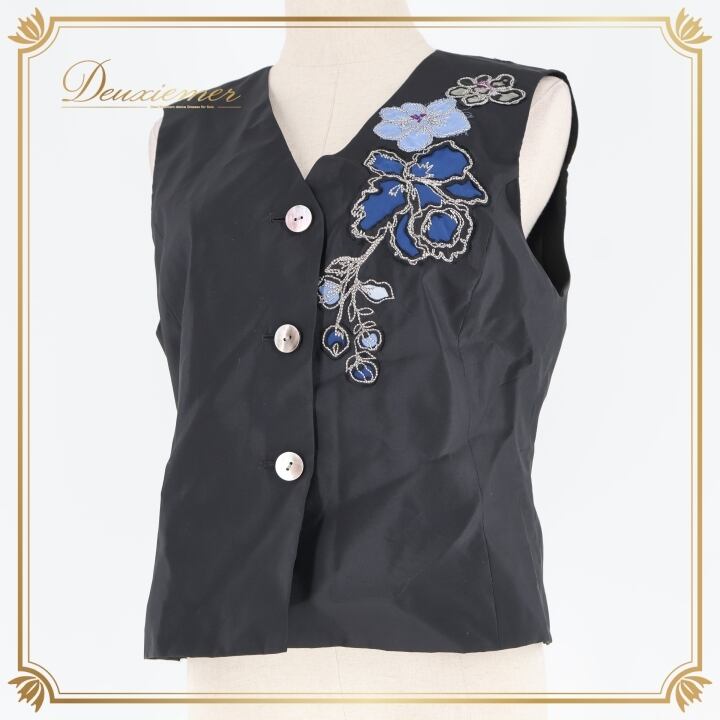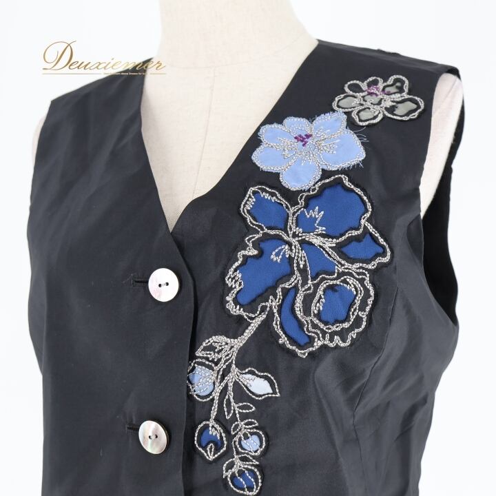 #TOKUKO #トクコプルミエヴォル #花柄デザイン #日本製 #ファッション #オシャレ #ベスト #秋コーデ #カジュアル #着こなし #女性ファッション #シルク #ナイロン #キュプラ #ブラックブルー #サイズ9 #総丈55cm #ウエスト44cm #トルソー #ENUTSU
