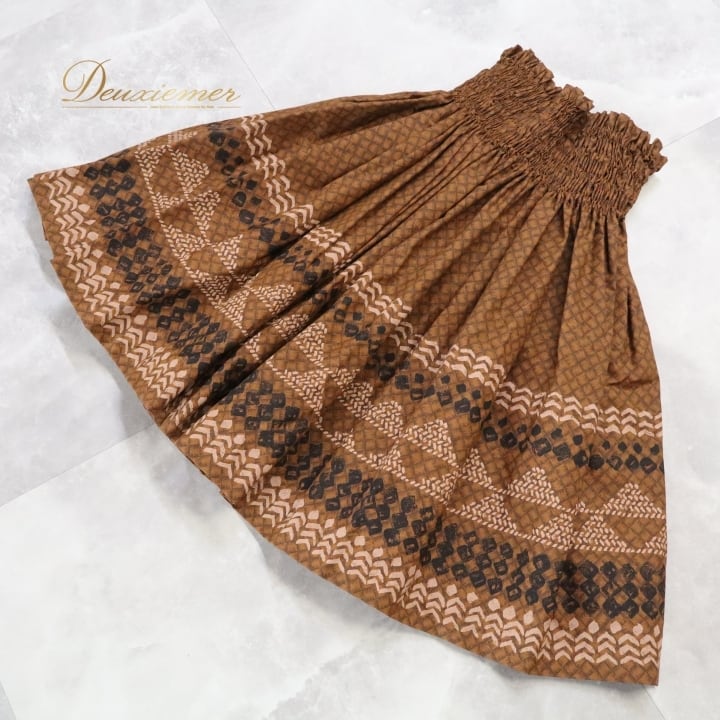 フラダンス 衣装 パウスカート ブラウン系 パウスカートショップ 日本製 カヒコ柄 グランジ加工 ハワイアンプリント アロハ フラ ダンス レッスン 練習 華やか おしゃれ 大人っぽい かわいい シングル スカート フレア 茶 黒 白 ブラック系 ホワイト系 カジュアル スポーツ 踊り レディース