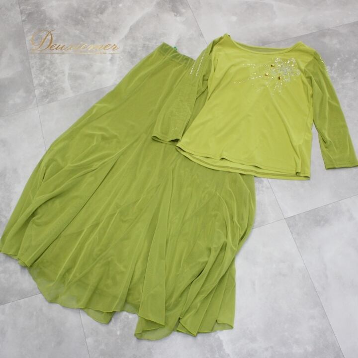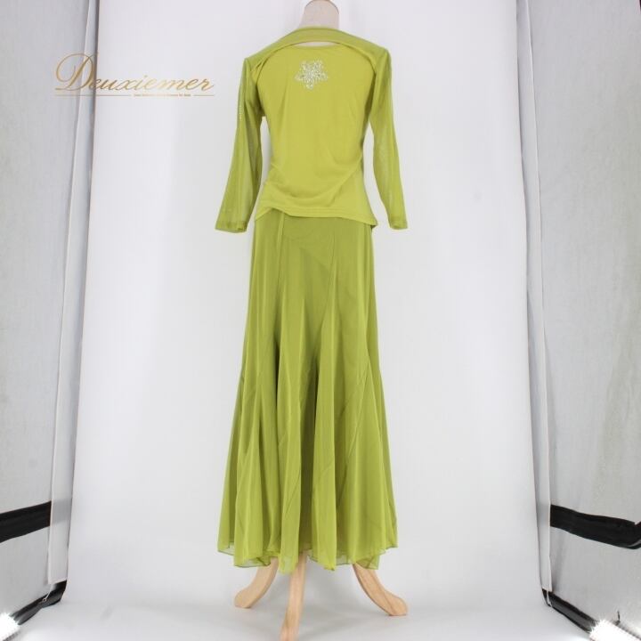 #社交ダンス #ダンス衣装 #セットアップ #ダンスファッション #グリーン衣装 #ラインストーン #伸縮性 #ポリエステル #ポリウレタン #女性用 #ダンススタイル #トルソー #ダンスコスチューム #華やか #お洒落 #Mサイズ #ウエストゴム #洗練されたデザイン #イベント衣装 #ダンスパフォーマンス #ENUTSU