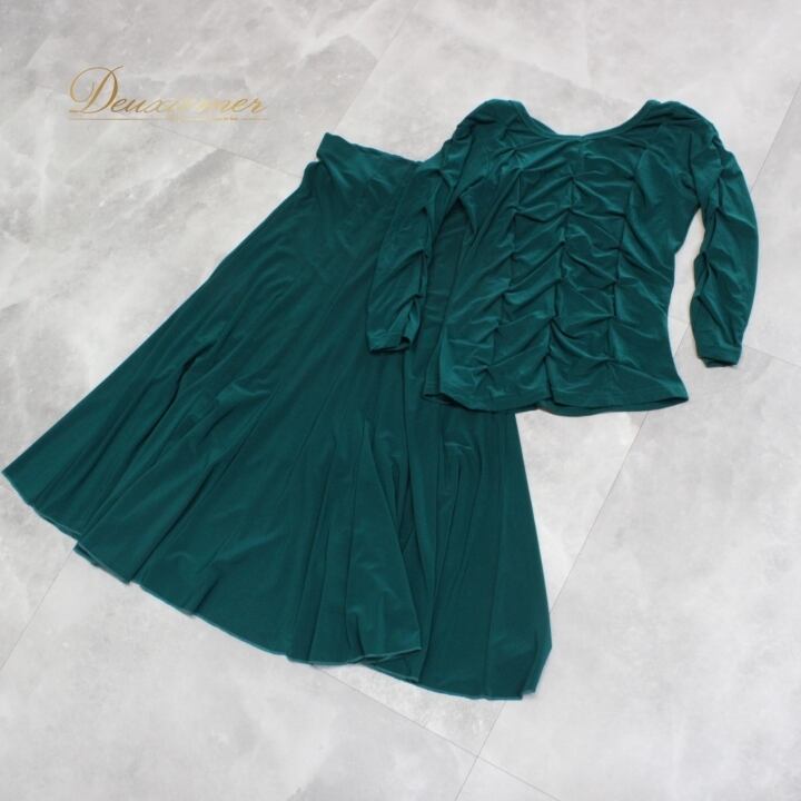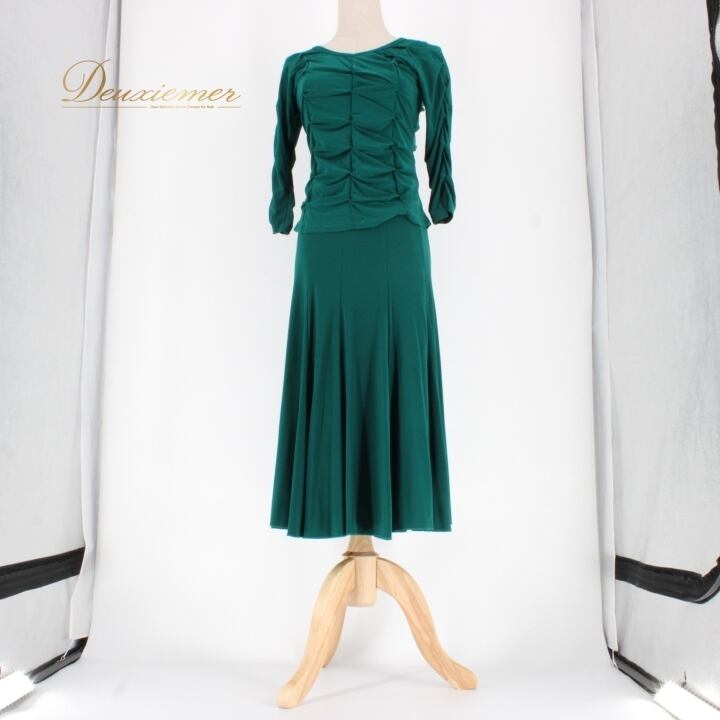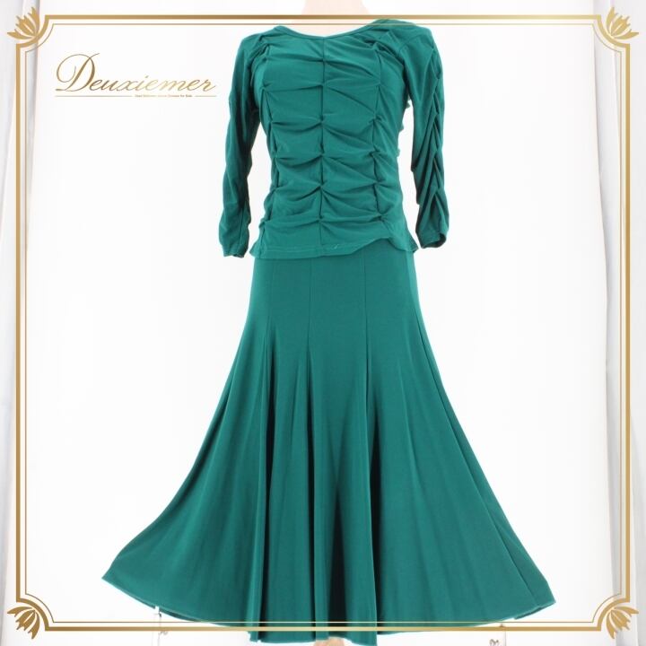 社交ダンス 衣装 スタンダード 上下セット ツーピース レッスンウェア パーティ衣装 Create-Sun クリエイトサン グリーン系 緑 トップス スカート 無地 エレガント フレッシュ 柔らかい 伸縮性 おしゃれ ダンス用 2ピース セットアップ 女性用 汗染み防止 撥水 ポリエステル 光沢 上品 スカート丈 靴下 コーディネート シンプル アクティブ