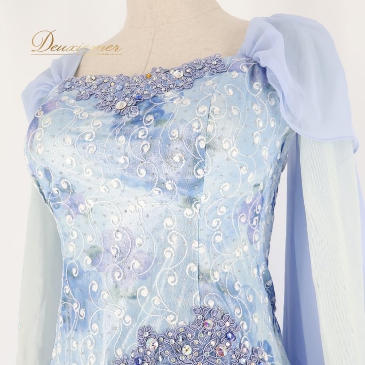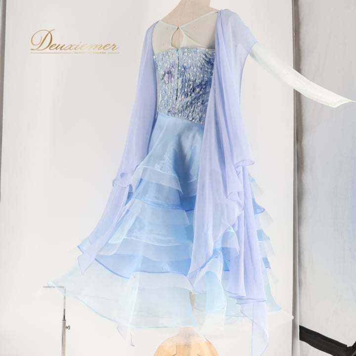 社交ダンス 衣装 スタンダードドレス ワンピース ドレス ブルー系 Leirina レイリーナ 水色 レース フロート デモ 競技 パーティ 発表会 ダンス 水色系 エレガント ドレスアップ ステージ衣装 ダンスパフォーマンス 競技用 衣装 フリル おしゃれ