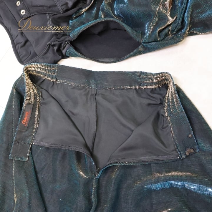 社交ダンス 衣装 チャコット Chacott 日本製 ラテン トップス スカート ツーピース セットアップ ブルー系 グリーン系 緑 光沢 ダンス パーティ 発表会 軽い ラテン衣装 ダンス用衣装 競技用衣装 おしゃれ
