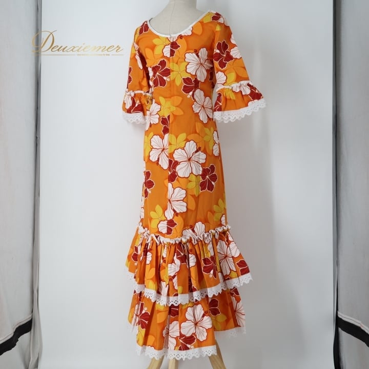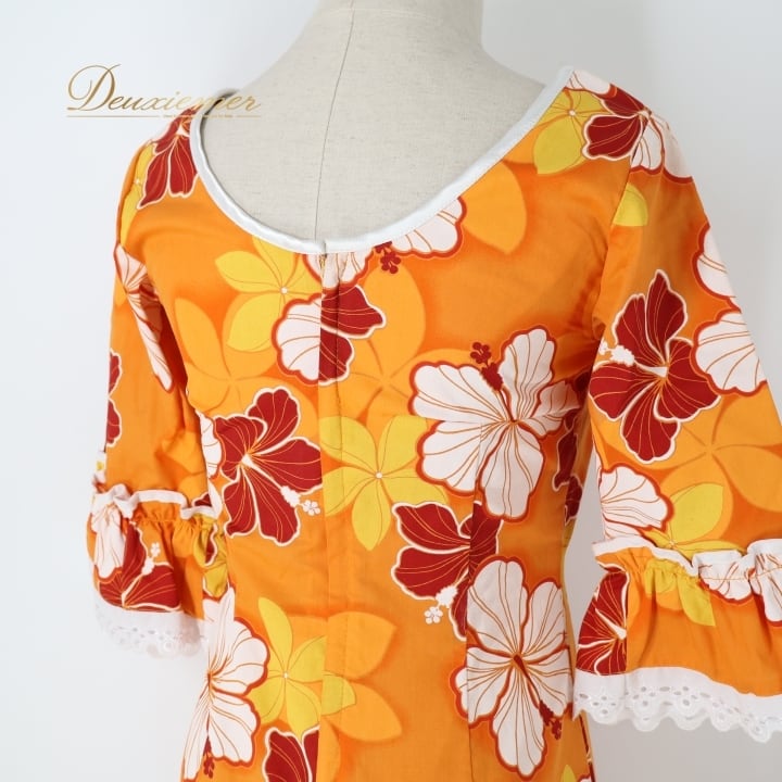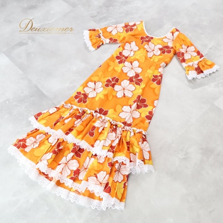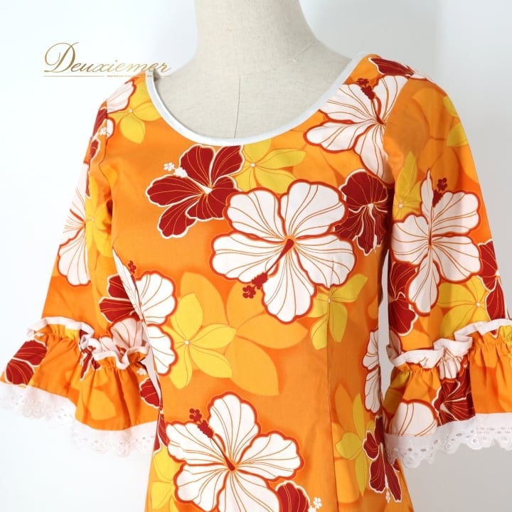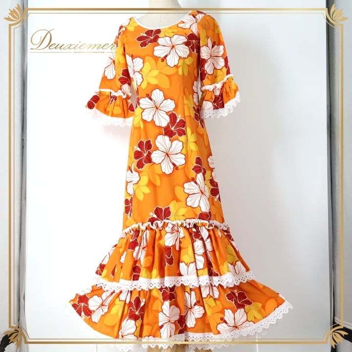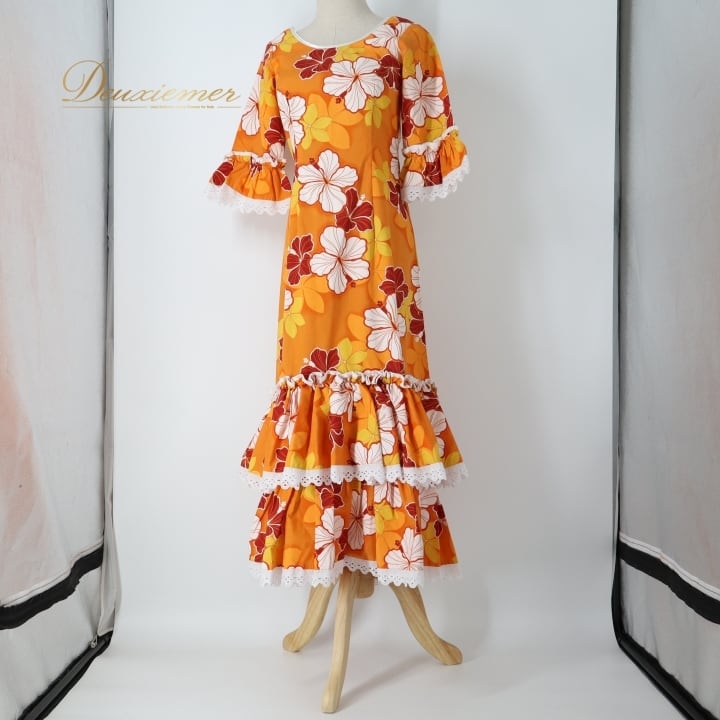 #フラダンス #フラダンス衣装 #ハワイアン #ハワイ #ワンピース #ドレス #オレンジ #フリル #女性ファッション #パーティー衣装 #華やか #夏コーデ #カワイイ #コットン #ポリエステル #アロハ #楽しみ #ダンス衣装 #ハワイアンスタイル #ENUTSU