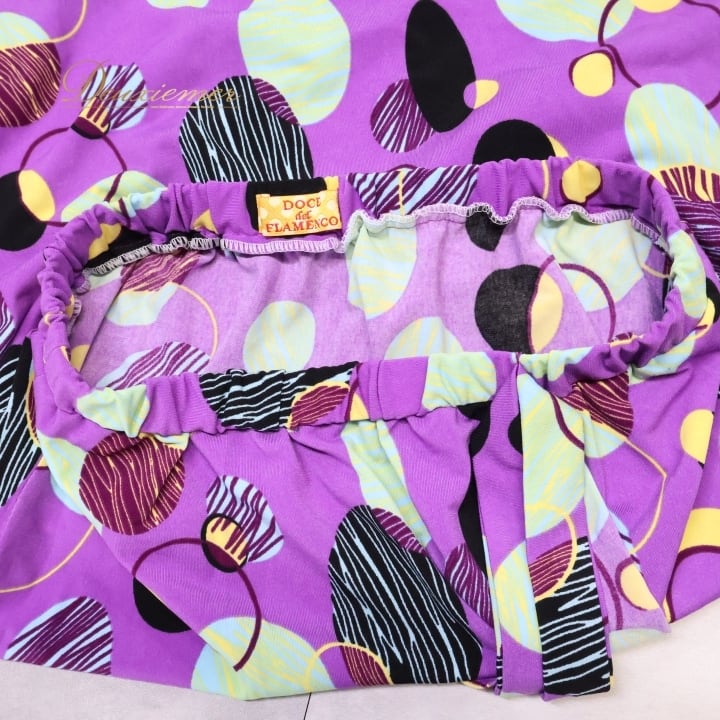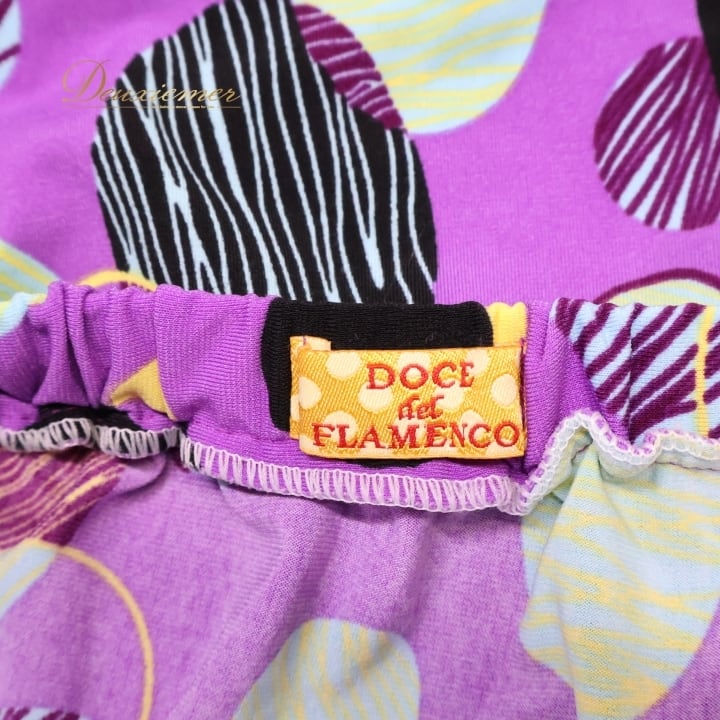 フラメンコ 衣装 スカート ファルダ パープル系 グリーン系 ブラック系 ドセデルフラメンコ DOCE del FLAMENCO 紫 柄 模様 リボン ミニ丈 レッスン 練習 飾り エプロン 伸縮素材 おしゃれ 可愛い ダンス 衣装 コスチューム レディース