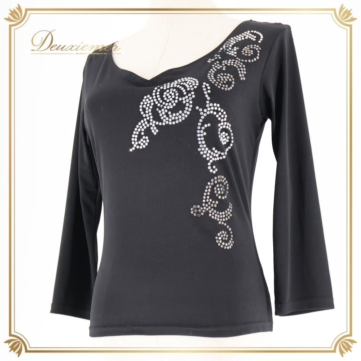 #社交ダンス #ダンス衣装 #トップス #ブラウス #Chacott #チャコット #社交ダンス衣装 #ラインストーン #ブラックトップス #ダンスファッション #ファッション #女性用トルソー #ダンススタイル #おしゃれ #伸縮性 #ポリエステル #ダンスアパレル #ダンスウェア #DanceFashion #ENUTSU