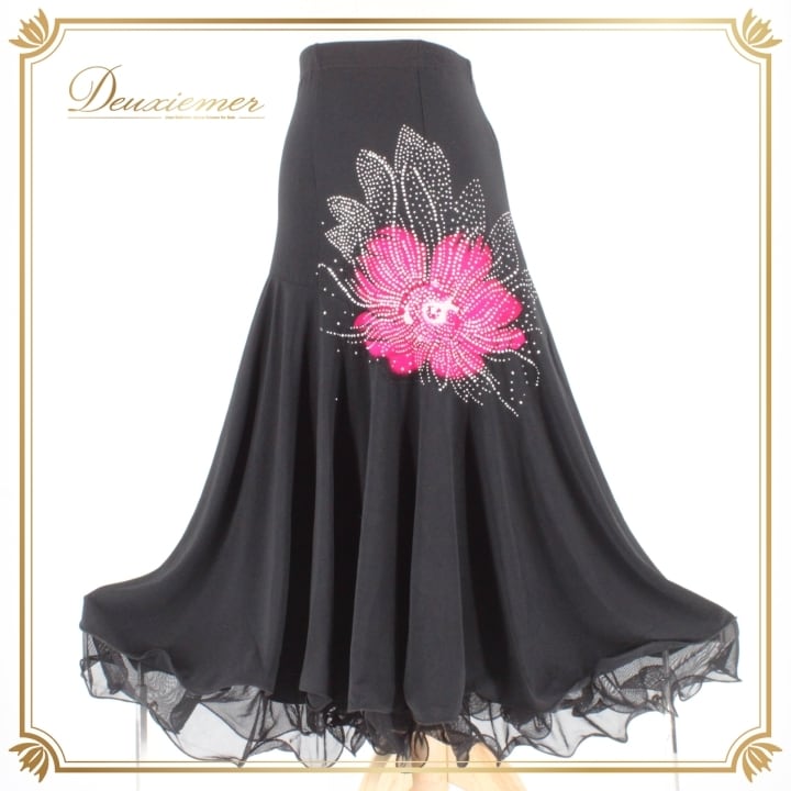社交ダンス 衣装 スタンダード スカート レッスンウェア レディース ブラック系 マゼンダピンク系 ラインストーン 花柄 練習着 ICHIOKU イチオク 華やか おしゃれ ダンス用服装 着心地抜群 フレアスカート 高品質 伸縮性 レディースファッション ストリートダンス スカートスタイル パーティー用 衣装替え チュニック ポリエステル製 体型カバー カジュアルスタイル レッスン用スカート アクティブウェア フォーマル ダンス衣装用品