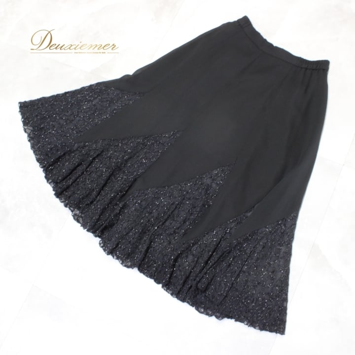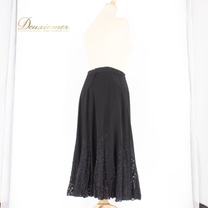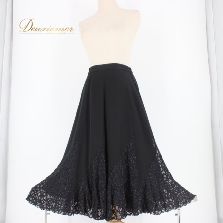 社交ダンス 衣装 スタンダード スカート レッスンウェア レディース ハチロー 黒 ブラック系 練習着 キラキラ レース シンプル フォーマル ポリエステル ナイロン レーヨン アーバンブラック 着回し便利 ファスナー 伸縮性 有り 総丈73cm ウエスト32cm Mサイズ 日本製