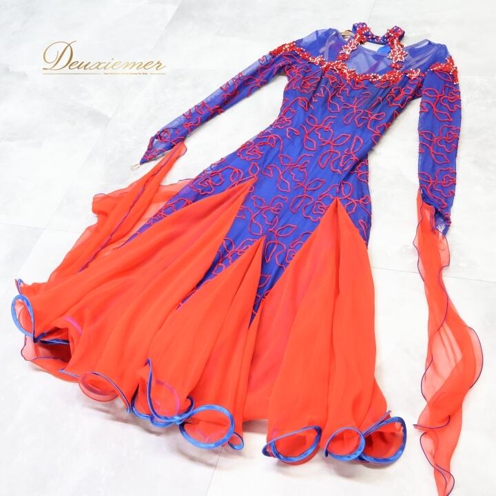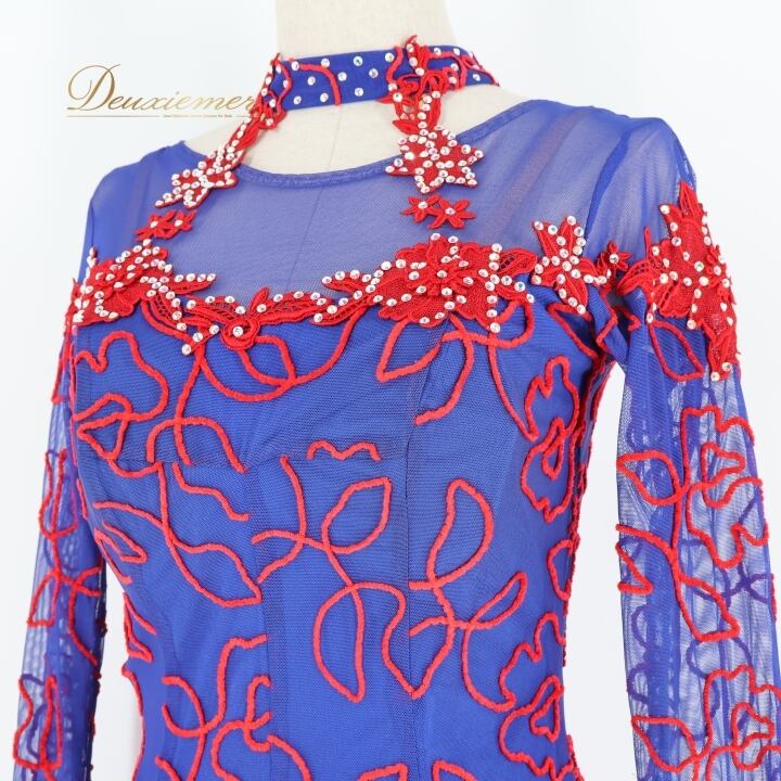 #社交ダンス #ダンス衣装 #ワンピース #ドレス #赤青 #鮮やかな色合い #スカート #ファスナー #胸パッド #伸縮性 #トルソー #ダンスファッション #パーティードレス #舞台衣装 #コスチューム #フラダンス #ダンススタイル #レディースファッション #オシャレ #ENUTSU