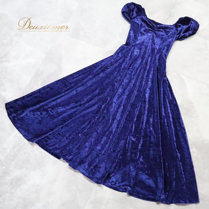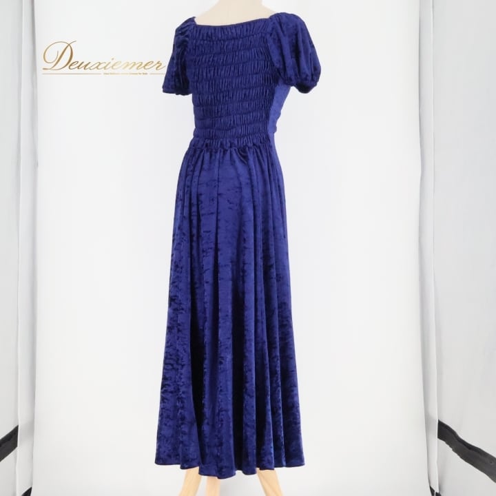 #フラダンス #衣装 #ワンピース #ドレス #海のある暮らし #ベロア生地 #日本製 #大人っぽい #デコルテデザイン #Sサイズ #Mサイズ #ポリエステル #フラダンス衣装 #ファッション #女性用トルソー #深いブルー #おしゃれ #舞台衣装 #パフォーマンス #ENUTSU