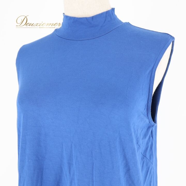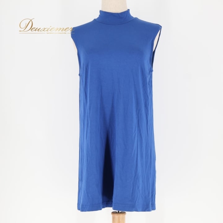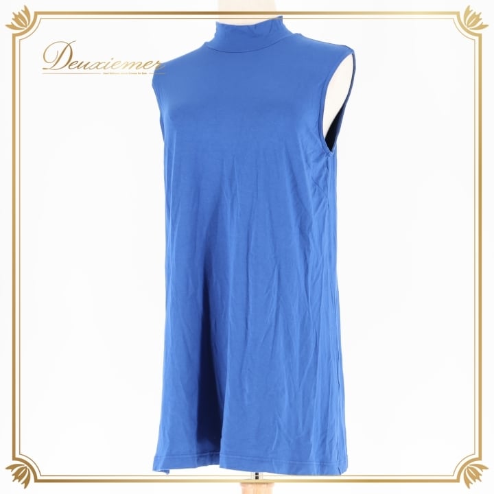 レディース トクコプルミエヴォル TOKUKO 1er VOL トップス ブルー系 日本製 無地 シンプル 伸縮 ストレッチ 青 ハイネック タートルネック 長め丈 チュニック かわいい カジュアル 普段着 鮮やか