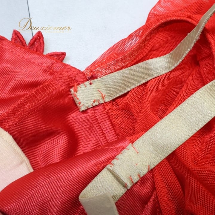 腹部丈上げられており、肩紐短くなるように縫われております。