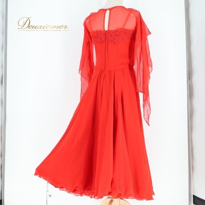 社交ダンス 衣装 スタンダードドレス ワンピース ドレス レッド系 セキネ SEKINE 日本製 赤 レース デモ パーティ 発表会 おしゃれ 可愛い 女性用 エレガント ダンス衣装