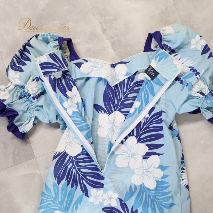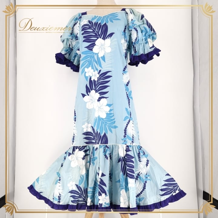 #フラダンス #フラダンス衣装 #ワンピース #ドレス #Lサイズ #ハワイ製 #ブルー #ホワイト #フリル #女性用ファッション #ビーチスタイル #パーティー衣装 #カジュアル #リゾートファッション #伝統衣装 #アロハシャツ #陽気なデザイン #夏のコーデ #ダンス衣装 #ENUTSU