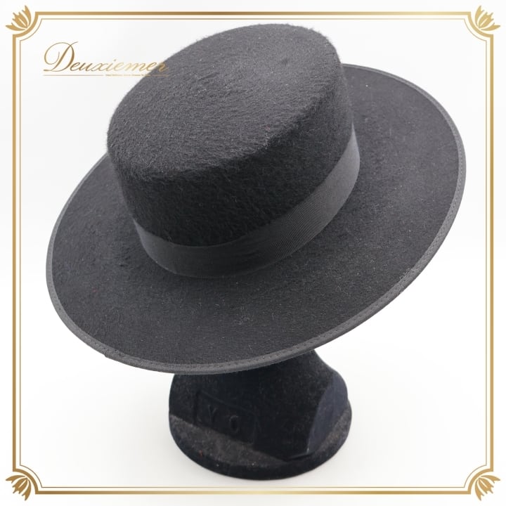 フラメンコ 衣装 コルドベス ハット ブラック系 フェルナンデス FERNANDEZ ROCHE 54サイズ 黒 帽子 ぼうし つば リボン つば付き シンプル スペイン製 無地 練習 レッスン 小物 イベント ステージ オールブラック
