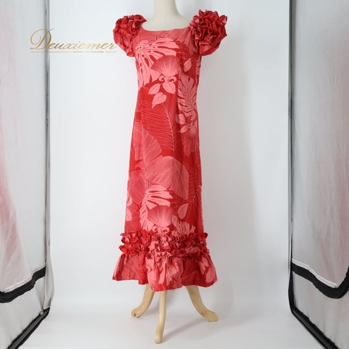 フラダンス 衣装 ワンピース ドレス レッド系 フラ&タヒチ 日本製 Hula&Tahiti モンステラ柄 ハワイアンプリント フリル アロハ フラ ダンス レッスン 練習 華やか 鮮やか かわいい おしゃれ 上品 大人っぽい フラダンス衣装 ダンス衣装 ワンピース ドレス レディース ハワイアンスタイル カジュアル リゾート オシャレ フリルデザイン かわいいデザイン