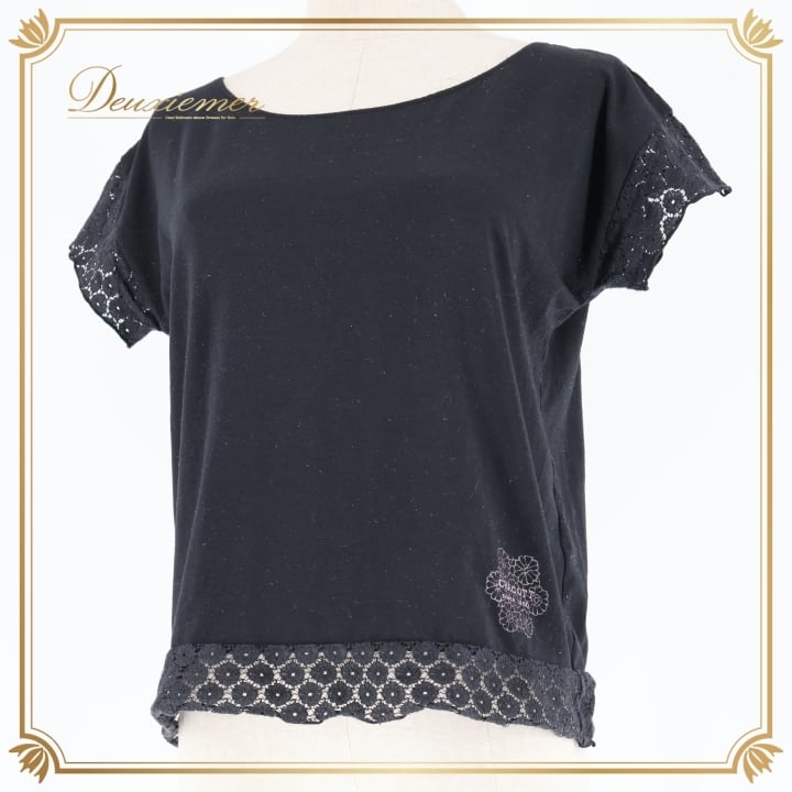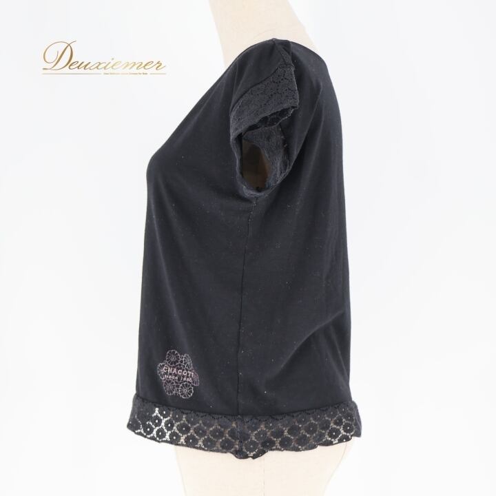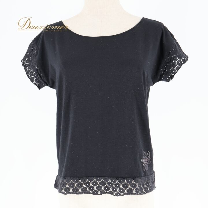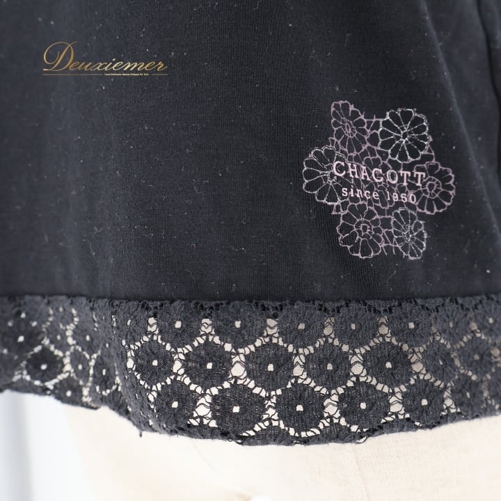 社交ダンス 衣装 トップス Tシャツ ブラック系 チャコット Chacott 日本製 黒 練習 レッスン 伸縮 ストレッチ レース バレエ かわいい ダンス衣装