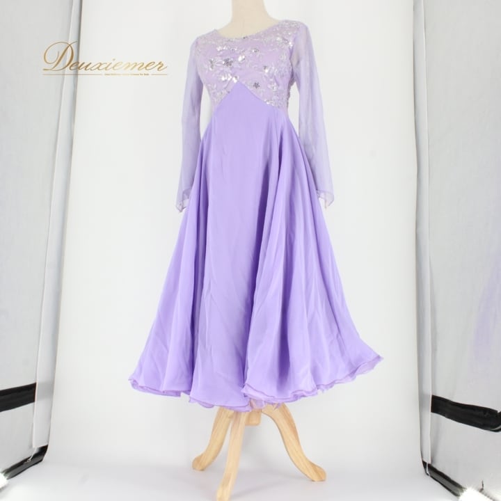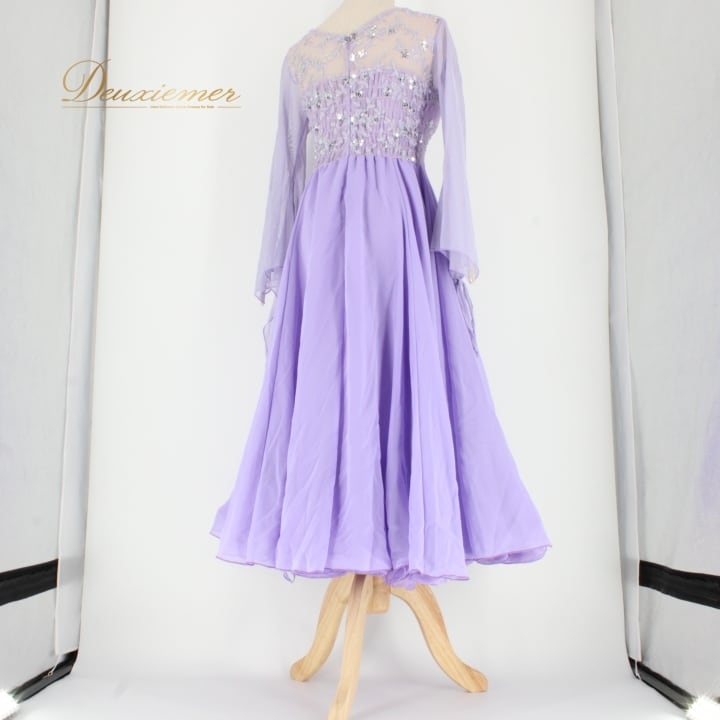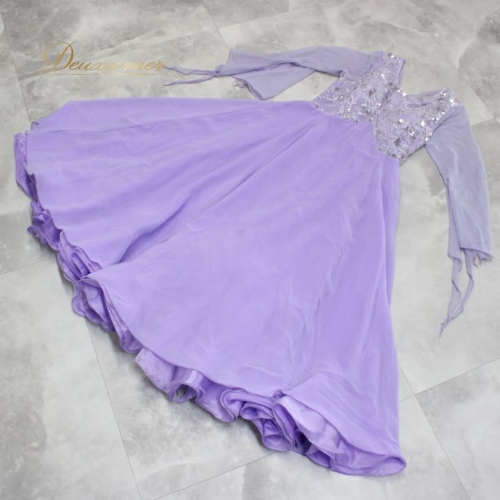 #社交ダンス #ダンス衣装 #ドレス #ライラックパープル #スパンコール #二重スカート #チョーカー #ファッション #ポリエステル #Mサイズ #優雅さ #女性用トルソー #ダンスパフォーマンス #パーティードレス #舞台衣装 #おしゃれ #ダンススタイル #衣装レンタル #ダンスレッスン #ENUTSU