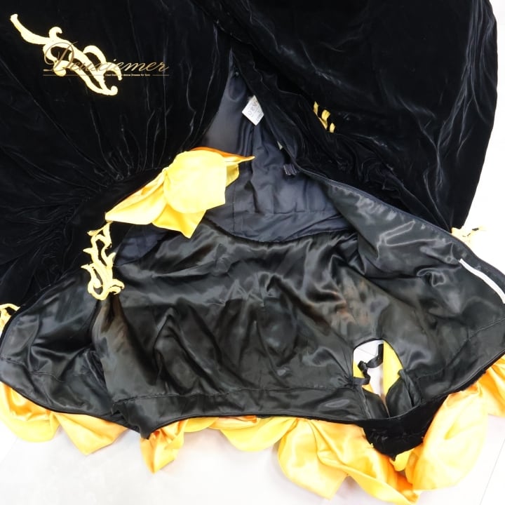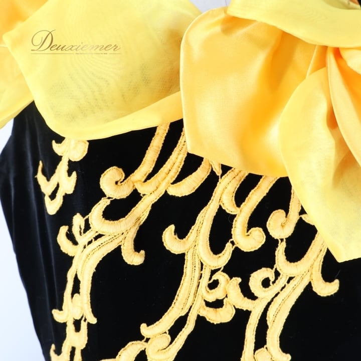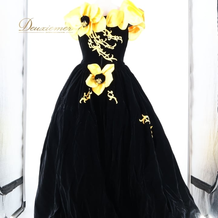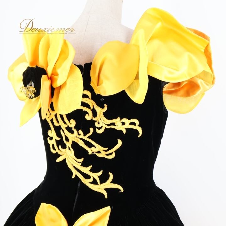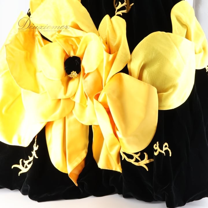 パーティドレス ワンピース ドレス ブラック系 イエロー系 グレイス GRACE 黒 黄色 オレンジ ベロア 発表会 演奏会 ボリューム 花 フラワー パーティー おしゃれ 豪華 レディース 華やか