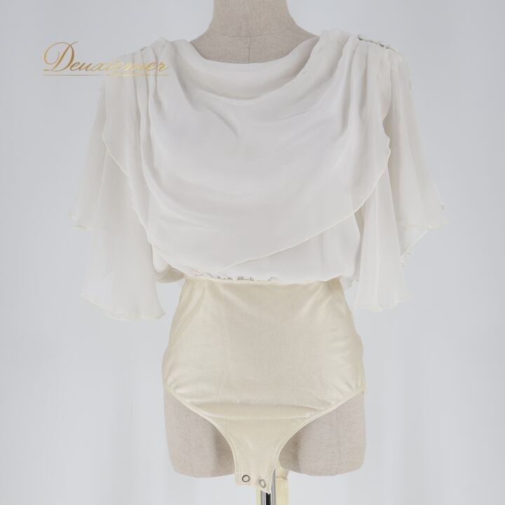 社交ダンス 衣装 トップス レオタード ホワイト系 チャコット Chacott 白 日本製 無地 シンプル ドレープ 伸縮 ストレッチ 練習 レッスン 爽やか 明るい かわいい ダンス衣装 ボタン イベント ステージ