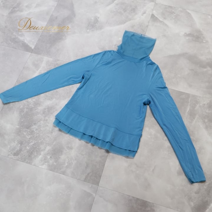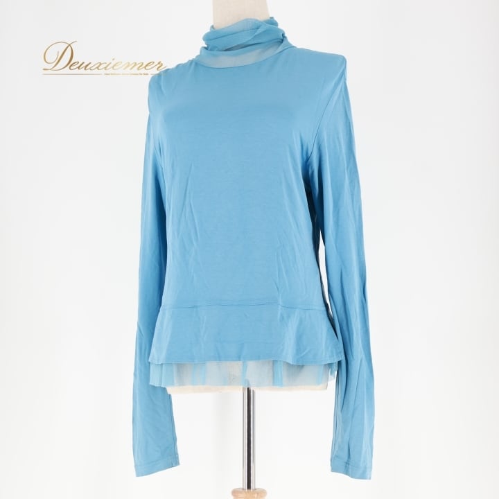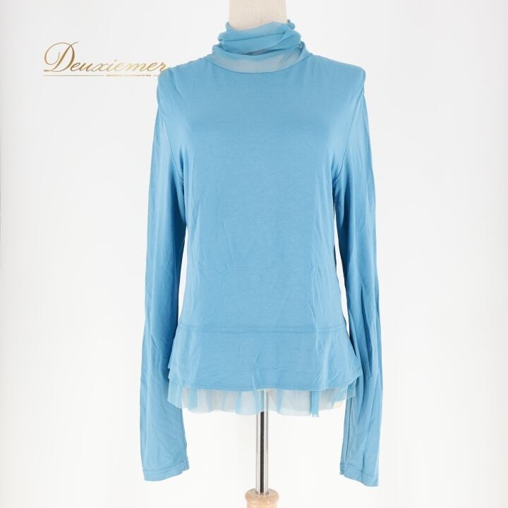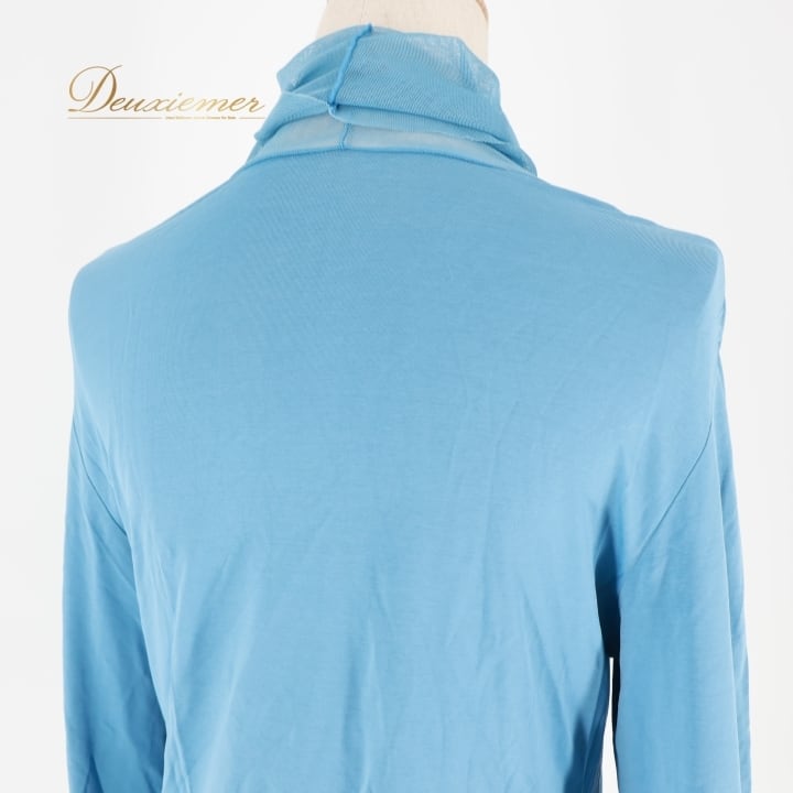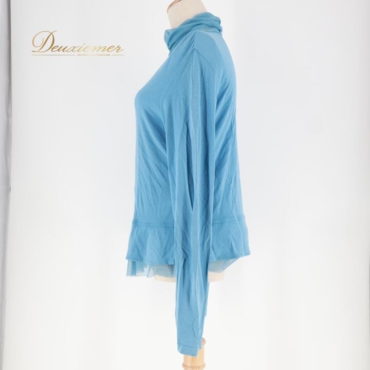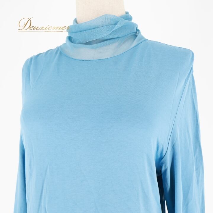 レディース トクコプルミエヴォル TOKUKO 1er VOL トップス ブラウス ブルー系 日本製 水色 無地 シンプル 伸縮 ストレッチ ハイネック タートルネック メッシュ生地 かわいい くすみカラー カジュアル 普段着 おしゃれ お出かけ 長袖