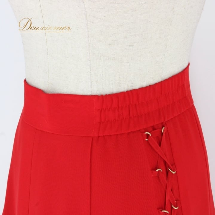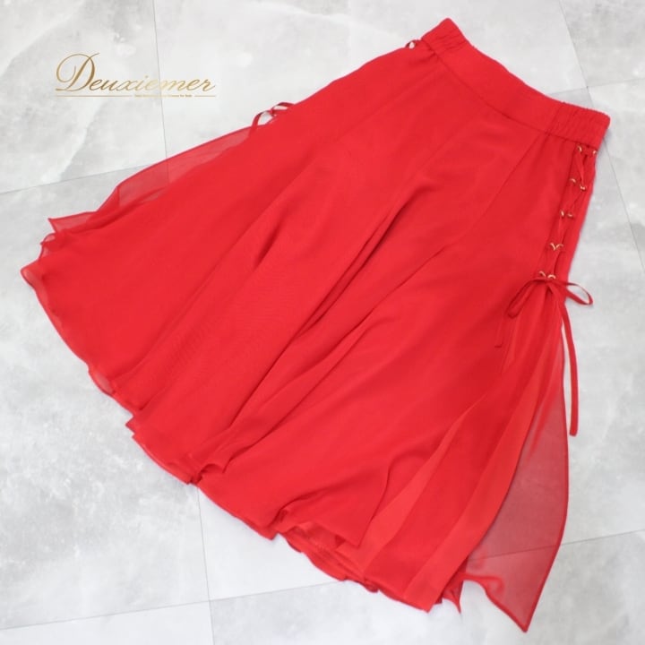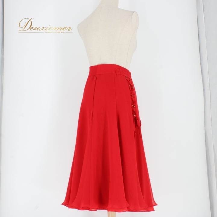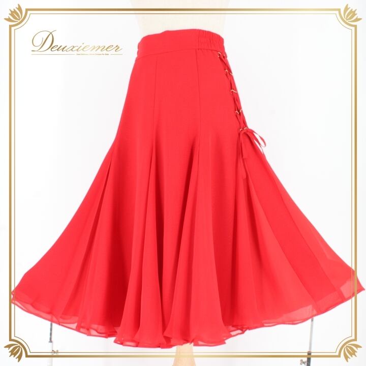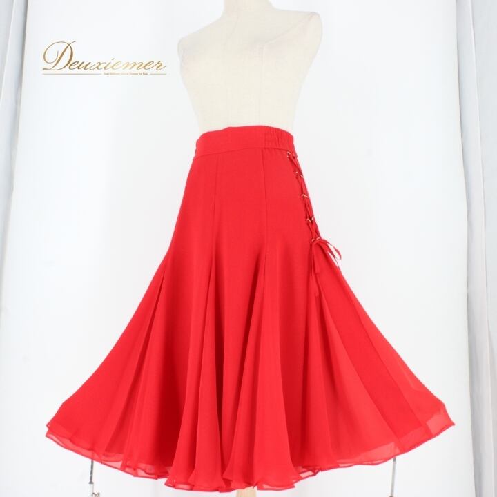 #社交ダンス #ダンス衣装 #スカート #ファッション #ポリエステル #日本製 #赤色 #トルソー #編み上げデザイン #伸縮性 #コスチューム #ダンススタイル #女性用 #舞台衣装 #イベント #ダンサー #ダンススタジオ #スタイル #おしゃれ #ENUTSU