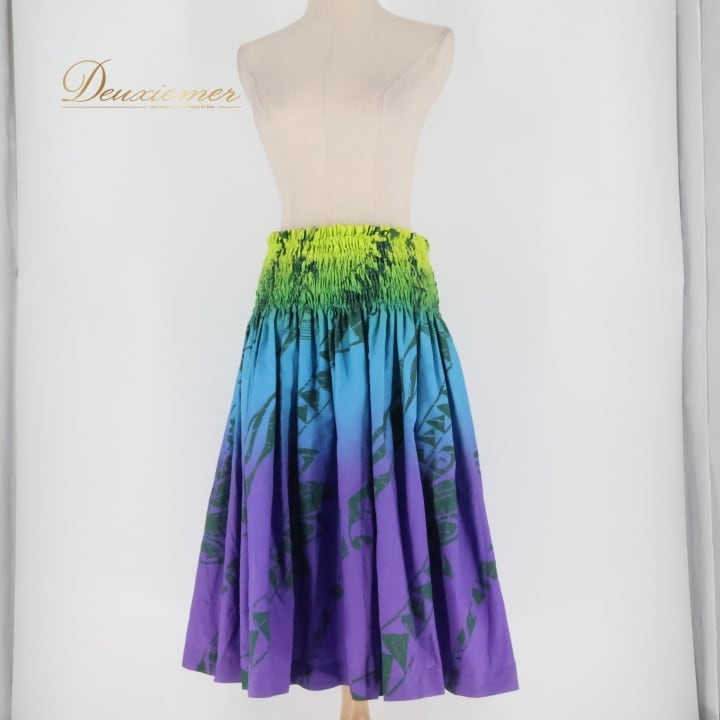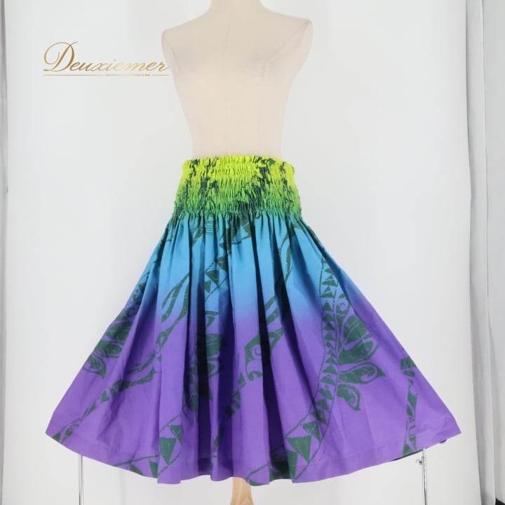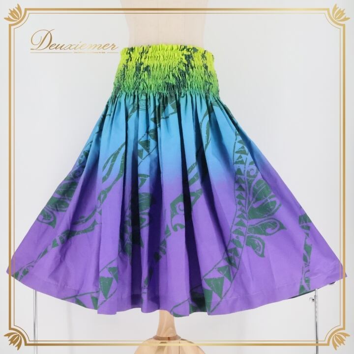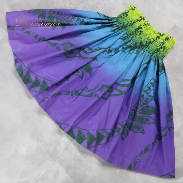 フラダンス 衣装 パウスカート プアラニ パープル系 PUALANI カヒコ柄 グラデーション グリーン系 ブルー系 シングル シンプル かわいい 華やか 鮮やか 明るい 紫 青 緑 黄緑 ハワイアン アロハ ハワイアンプリント フラ ダンス レッスン 練習