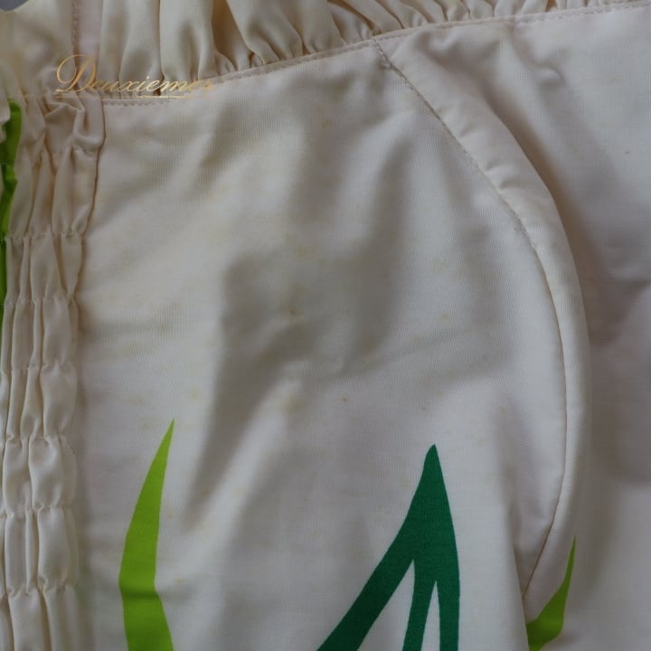 平置き実測:総丈約116cm(裾~胸上部まで)、身幅約34cm、ウエスト約28cm