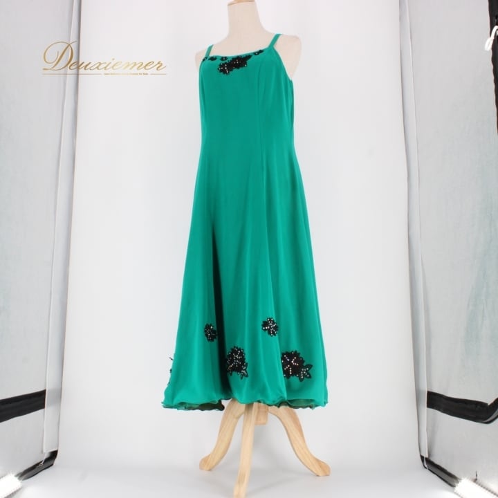 #社交ダンス #ダンス衣装 #ドレス #ラインストーン #グリーン #ブラック #シンプルスタイル #ファッション #トルソー #ウエスト #ダンスパフォーマンス #女性用 #サイズ9号 #伸縮性 #衣装レンタル #ダンスレッスン #イベント衣装 #パーティードレス #ダンスファッション #ENUTSU