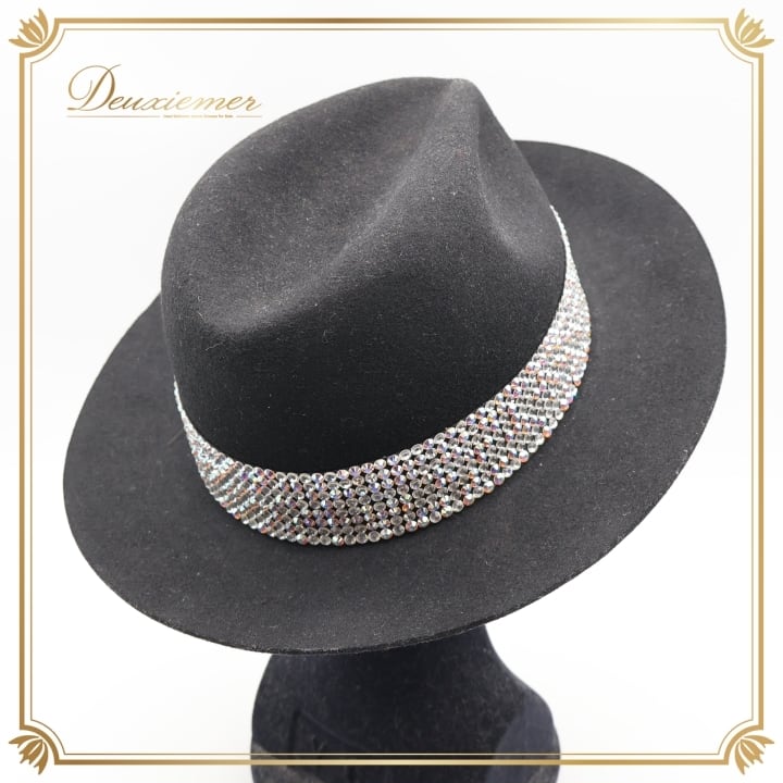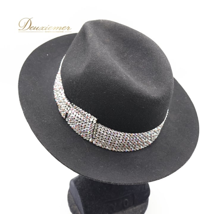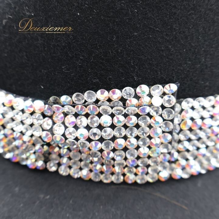 ダンス 衣装 帽子 ハット ブラック系 タカダンス TAKA DANCE 黒 ラインストーン ラテン ジャズ デモ パーティー メンズ ぼうし リボン 小物 ダンス小物 イベント ステージ 競技 キラキラ 社交ダンス シルバー系