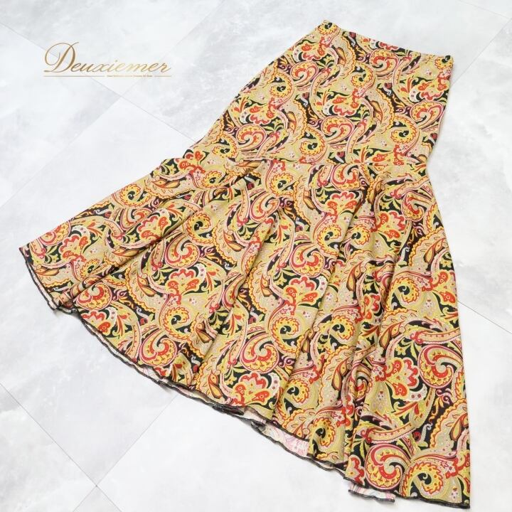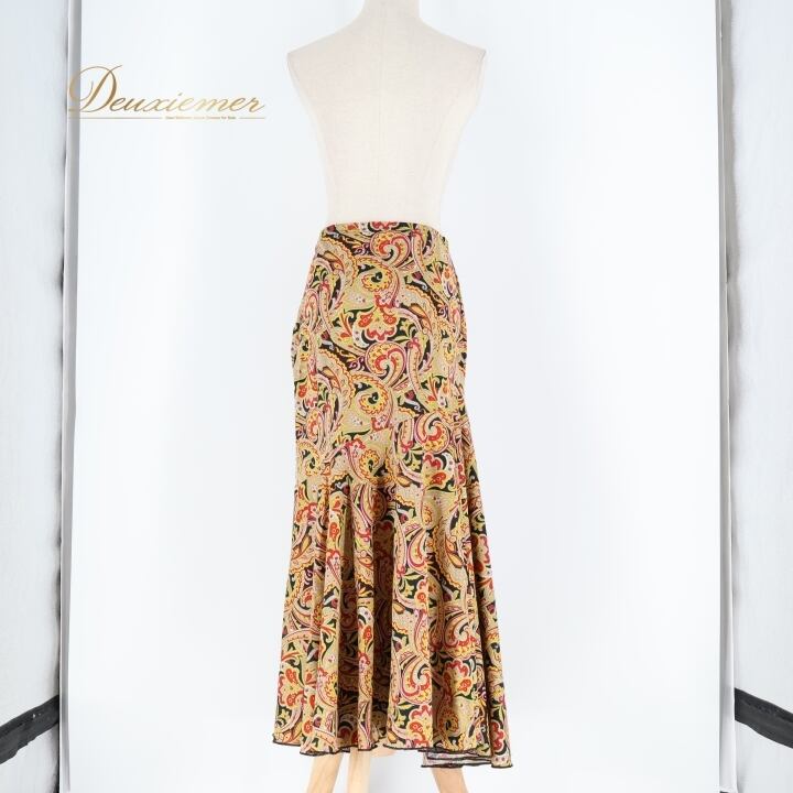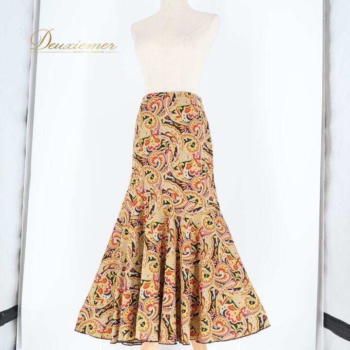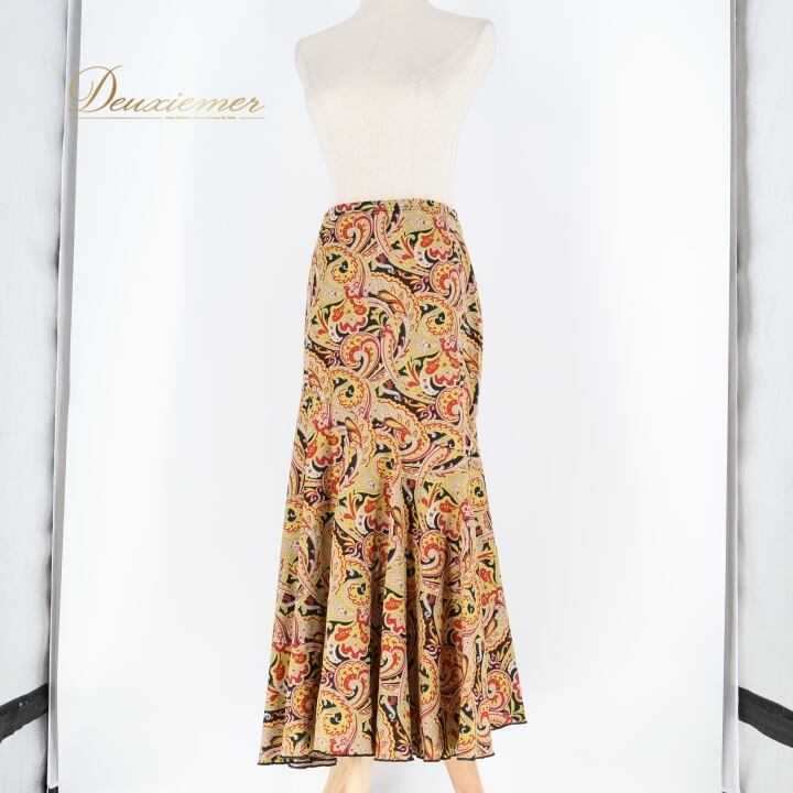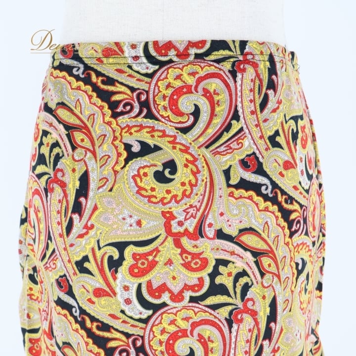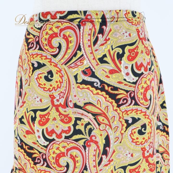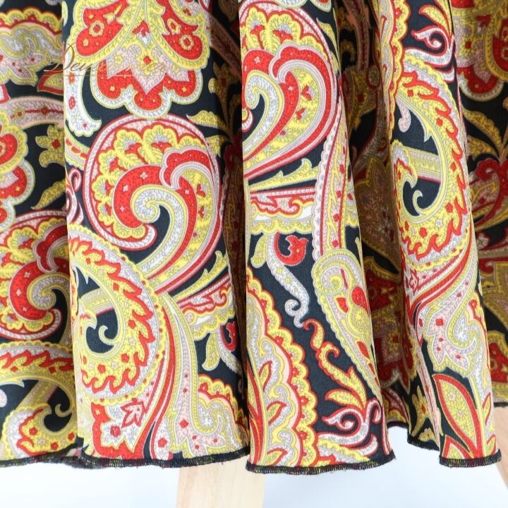 フラメンコ 衣装 ファルダ スカート ブラック系 レッド系 イエロー系 黒 黄色 赤 ペイズリー 伸縮 ストレッチ 柄 模様 レッスン 練習着 ダンス パーティ 可愛い おしゃれ 踊り ダンス衣装 ダンスパーティ