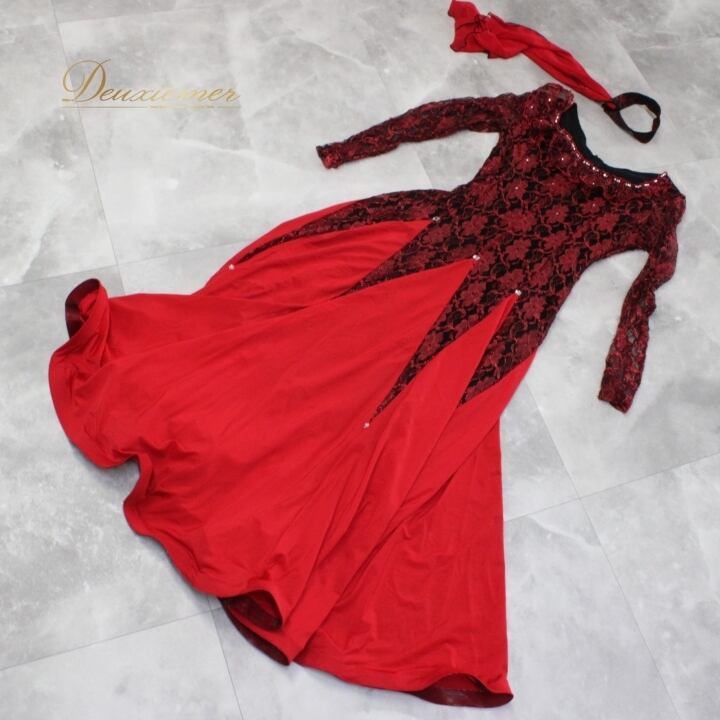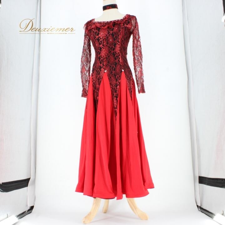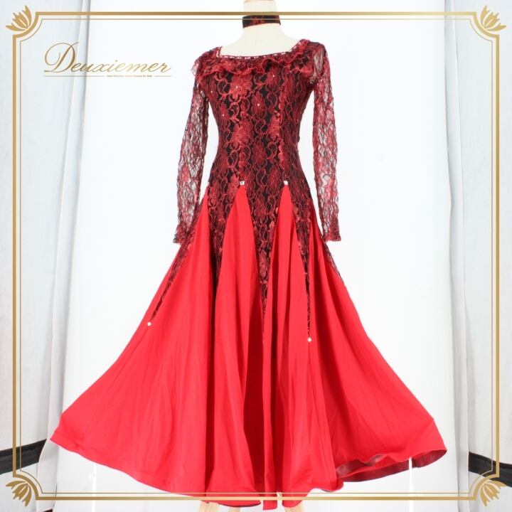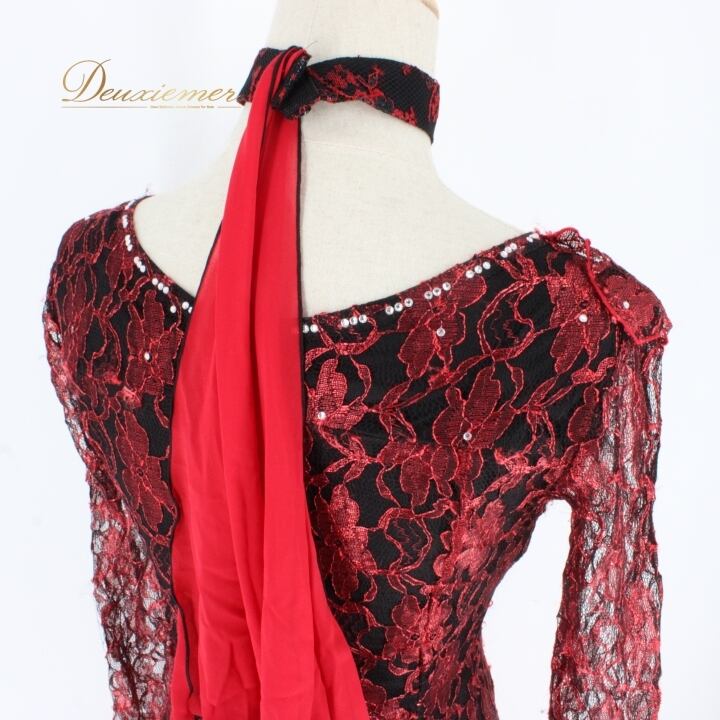 社交ダンス 衣装 スタンダード ドレス ワンピース パーティドレス 赤 黒 ブラック系 レッド系 レース ラインストーン 花柄 長袖 チョーカー パーティー用ドレス おしゃれ エレガント 薄手 ウエストシェイプ お祝い事 結婚式 二次会 ステージ衣装 ダンス発表会 女性用ドレス セクシー シンプル 体型カバー ドレープ フィット感 ダンス衣装 舞台衣装 ファッション トレンド