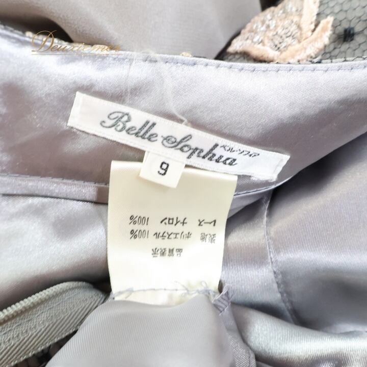 パーティドレス ワンピース ドレス グレイ系 ベルソフィア Belle sophia グレー 発表会 演奏会 パーティ ダンス 刺繍 パーティー レディース エレガント フォーマル おしゃれ ダンス衣装