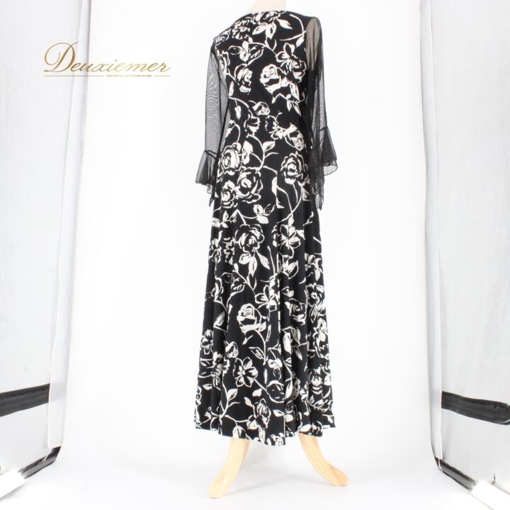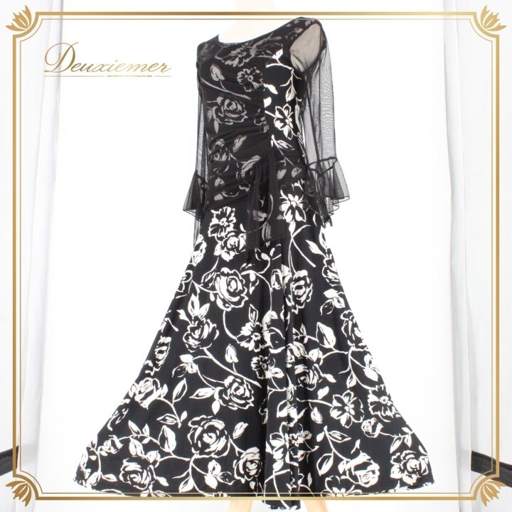 #社交ダンス #ダンス衣装 #ダンスドレス #ブラックホワイト #花柄ドレス #ファッション #フィットネス #エレガント #パフォーマンス衣装 #女性用衣装 #特別な日 #パーティードレス #トレーニング衣装 #ストレッチ素材 #ダンス好き #ダンススタイル #ファスナードレス #体型カバー #シックスタイル #ENUTSU