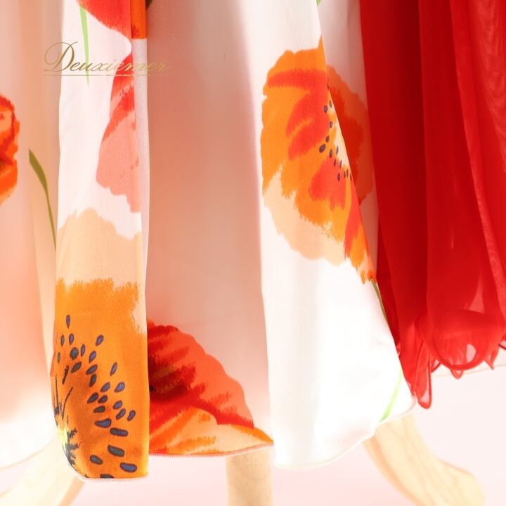 ▽暖色系の色合いが華やかなドレス