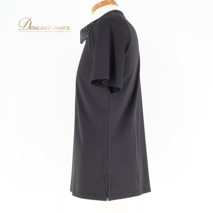 ▽ラインストーン 飾り 襟 黒 半袖