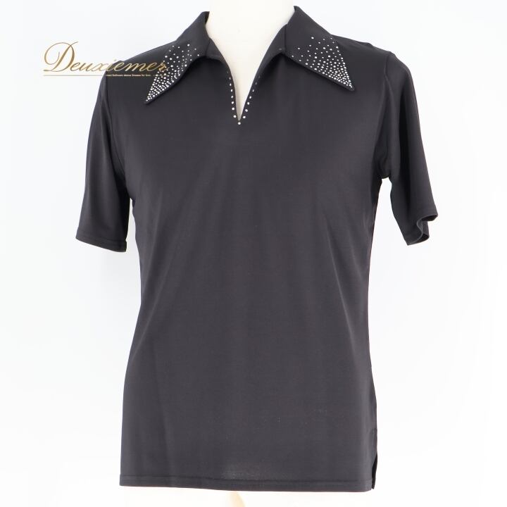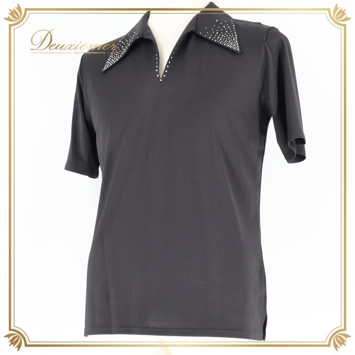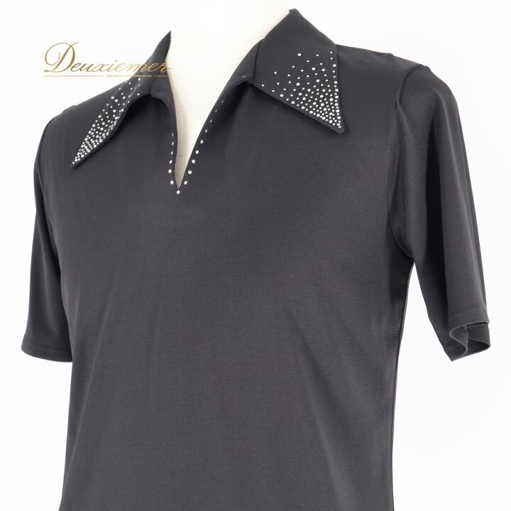 社交ダンス 衣装 シャツ ブラウス トップス ブラック系 黒 メンズ 男性 半袖 襟 レッスン 練習着 ダンス パーティ 発表会 ラインストーン おしゃれ ストレッチ スタイリッシュ 襟付き フォーマル 競技用 薄手 軽量 シンプル