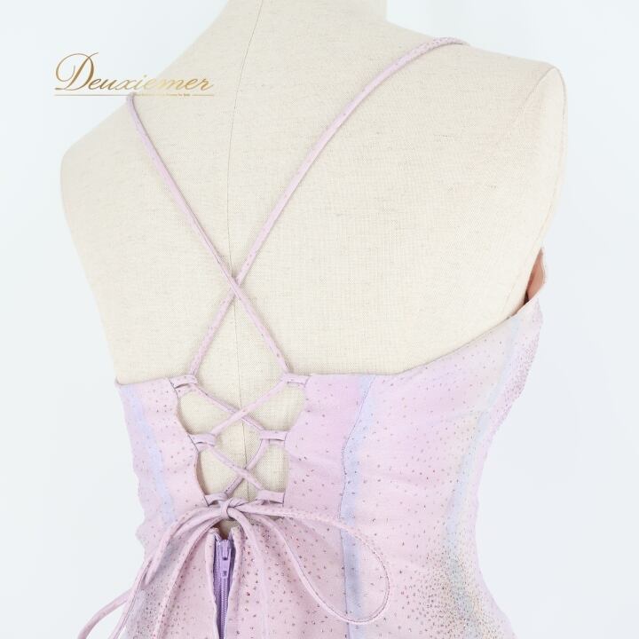 パーティドレス ワンピース ドレス パープル系 ピンク系 レベッカ REBECCA ピンク 紫 ラメ レース 発表会 パーティ 演奏会 軽い 編み上げ エレガント おしゃれ フォーマル 結婚式 レディース かわいい