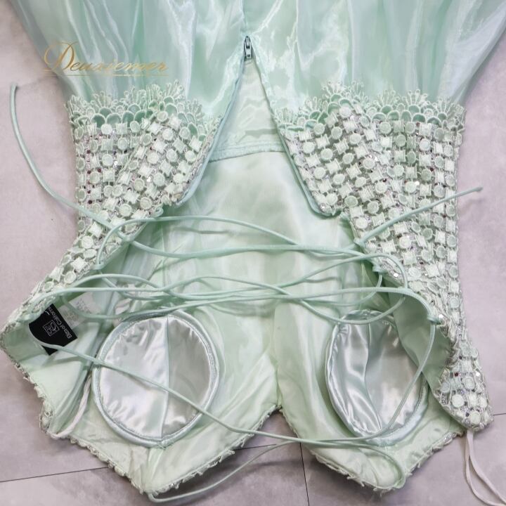 #パーティドレス #ワンピース #ドレス #ミントカラー #ElizaofCalifornia #背面ファスナー #編み上げ #ファッション #女性用トルソー #ドレスコーデ #おしゃれ #パーティー #特別な日 #サイズM #春夏ファッション #クールビューティー #ファッションアイテム #スタイル #ドレスアップ #ENUTSU