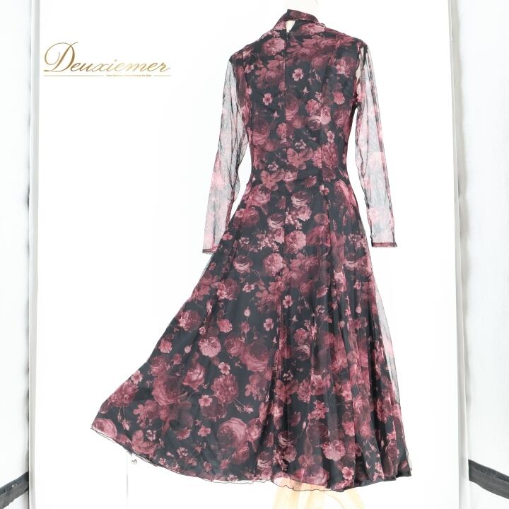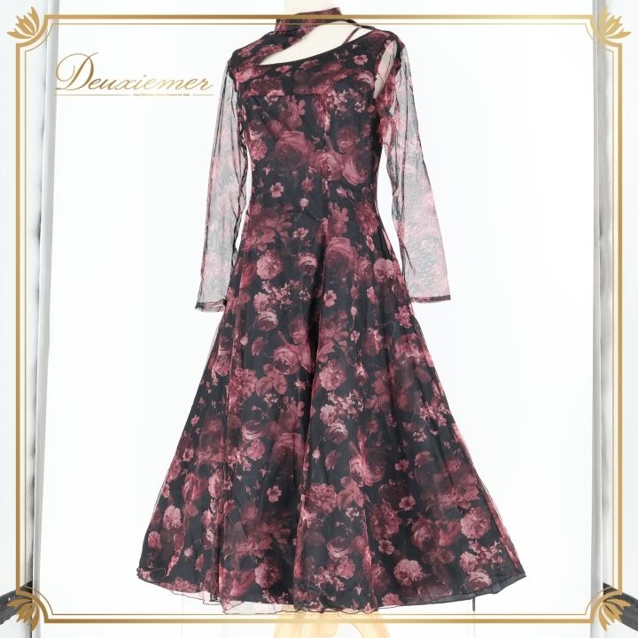 社交ダンス 衣装 ワンピース ドレス ブラック系 ピンク系 パープル系 サンリーヌ Sanline 日本製 黒 ピンク パープル 紫 花柄 レース 軽い パーティ 発表会 ダンス 軽量 おしゃれ 優雅 エレガント ダンスパーティ 女性用 上品 大人