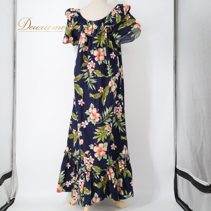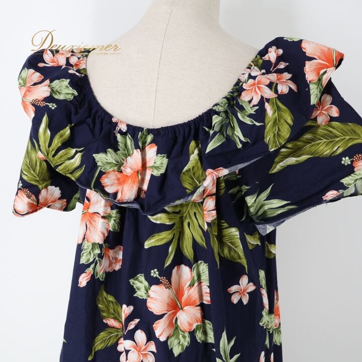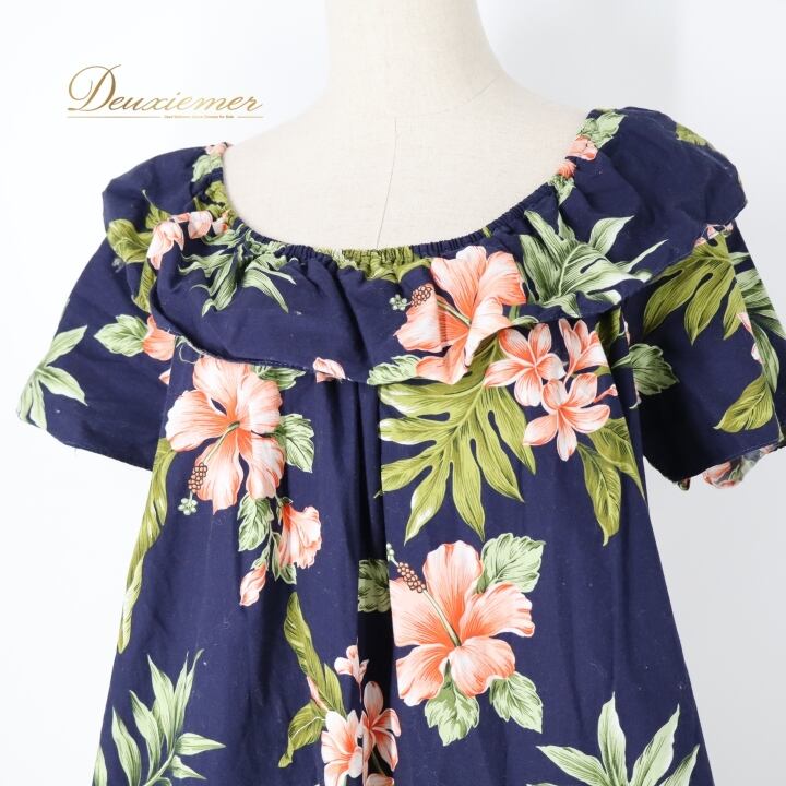 #フラダンス #ハワイアン #ドレス #ワンピース #フリル #ネイビー #コットン100 #大人かわいい #ハワイ製 #衣装 #フラダンス衣装 #かわいいプリント #リゾートファッション #夏ファッション #ビーチスタイル #リゾートドレス #おしゃれ #エスニックファッション #アロハ #ENUTSU