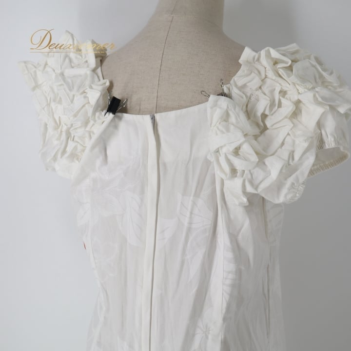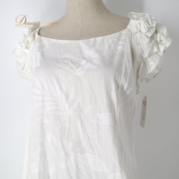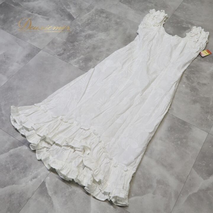 フラダンス 衣装 ワンピース ドレス ホワイト系 PACIFICLEGEND ハワイ製 ハイビスカス柄 プルメリア柄 モンステラ柄 ハワイアンプリント アロハ フラ ダンス レッスン 練習 フリル シンプル さわやか 華やか かわいい おしゃれ 上品 大人っぽい イベント衣装 フェスティバル ダンス用品