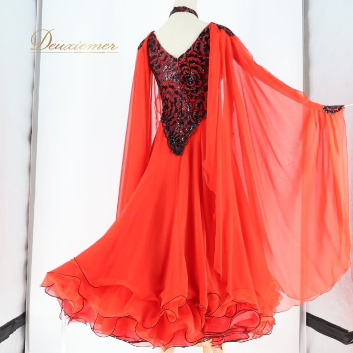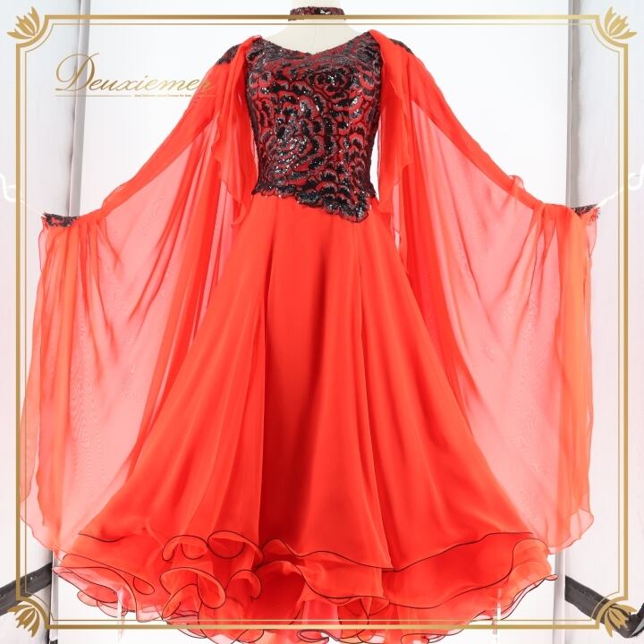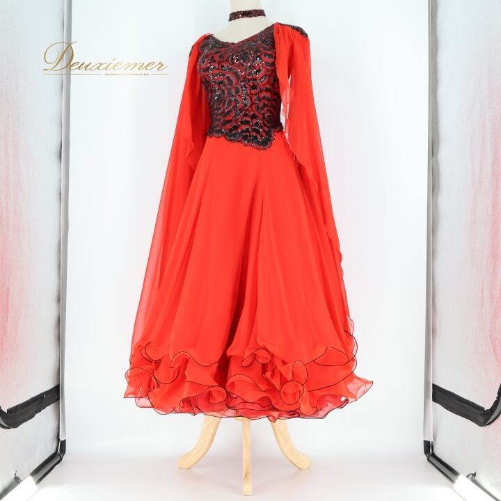 社交ダンス 衣装 スタンダードドレス ワンピース ドレス ブラック系 レッド系 セキネ SEKINE 日本製 赤 黒 フロート レース フリル ダンス パーティ 発表会 デモ 競技 エレガント フォーマル パーティー衣装 舞台衣装 競技用 レディース コスチューム 発表会用 ダンスウェア