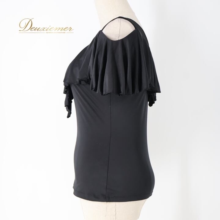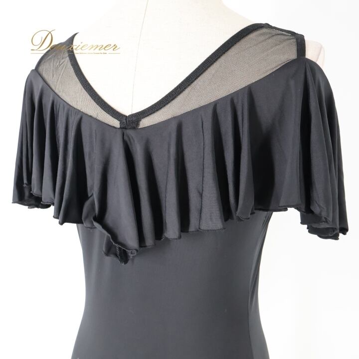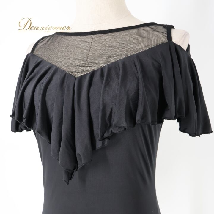 #社交ダンス #ダンス衣装 #ブラウス #トップス #Chacott #チャコット #ブラックトップス #フリル #日本製 #伸縮性 #ポリエステル #ポリウレタン #ナイロン #女性用トルソー #ダンスファッション #パフォーマンスウェア #ダンススタイル #衣装選び #おしゃれ #モダンダンス #ENUTSU
