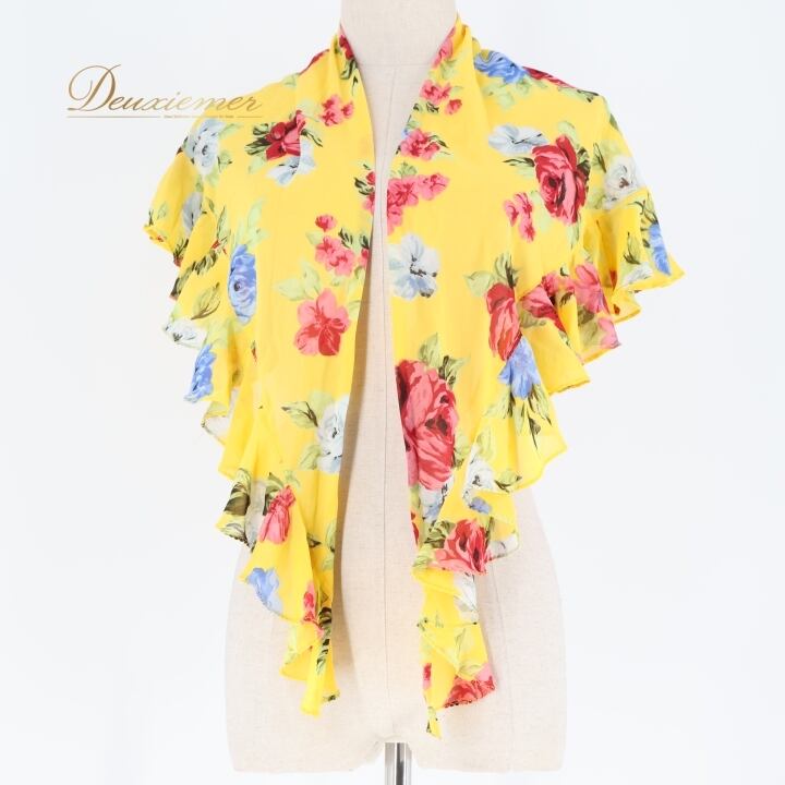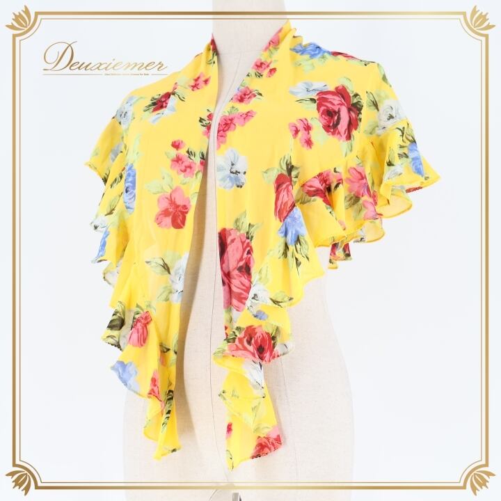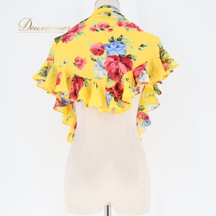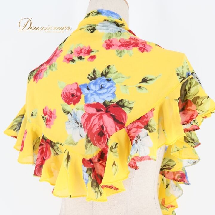 フラメンコ 衣装 シージョ イエローピキージョ イエロー系 レッド系 ピンク系 黄色 オレンジ 赤 ピンク 花柄 フリル 軽い 薄い 装飾 小物 軽量シージョ フラメンコ小物 花模様 ダンス衣装 コスチューム