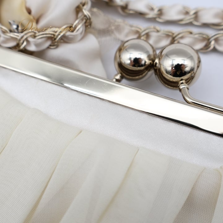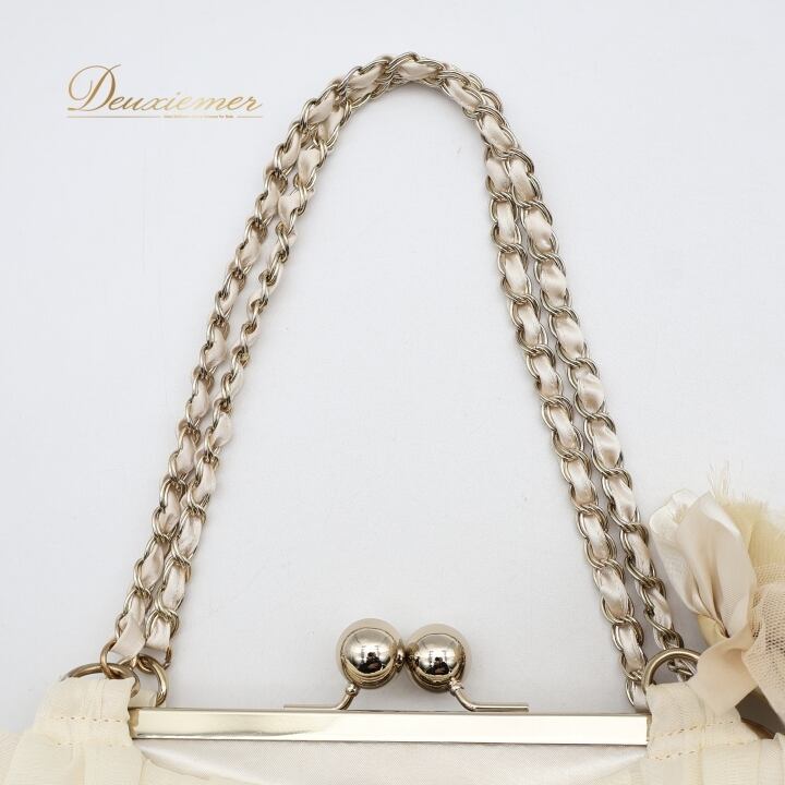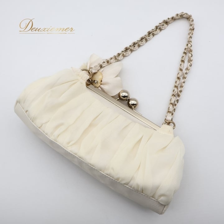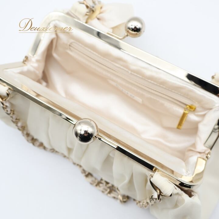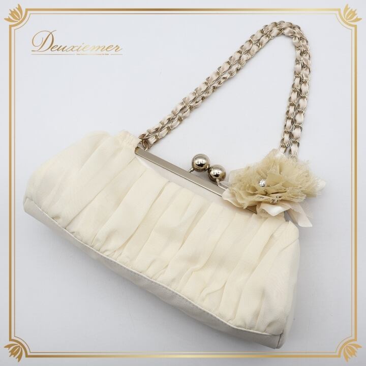 レディース エメ AIMER バッグ ホワイト系 パーティー 結婚式 白 金 がま口 上品 かわいい チェーン フォーマル 花 小さめ お呼ばれ イベント ゴールド系