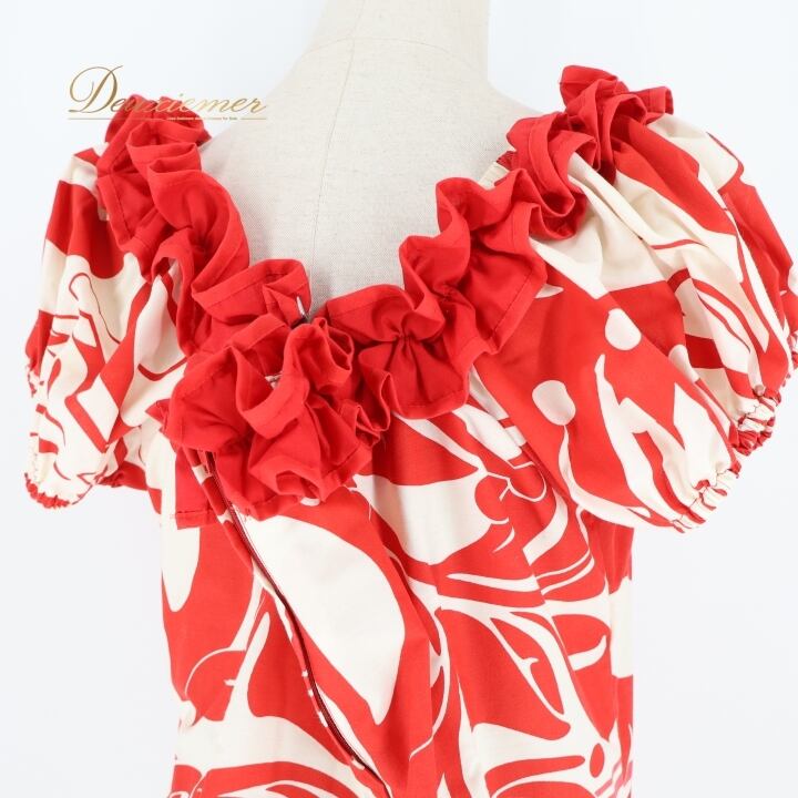 フラダンス 衣装 ワンピース ドレス レッド系 good times ハワイ製 モンステラ柄 ハワイアンプリント フリル アロハ フラ ダンス レッスン 練習 赤 白 ホワイト系 華やか 鮮やか かわいい おしゃれ 半袖 フレア フラダンス衣装 ハワイアンスタイル リゾートファッション 大人用 レディースファッション 柄物