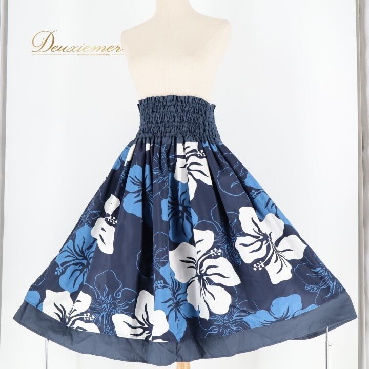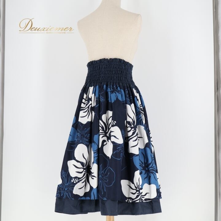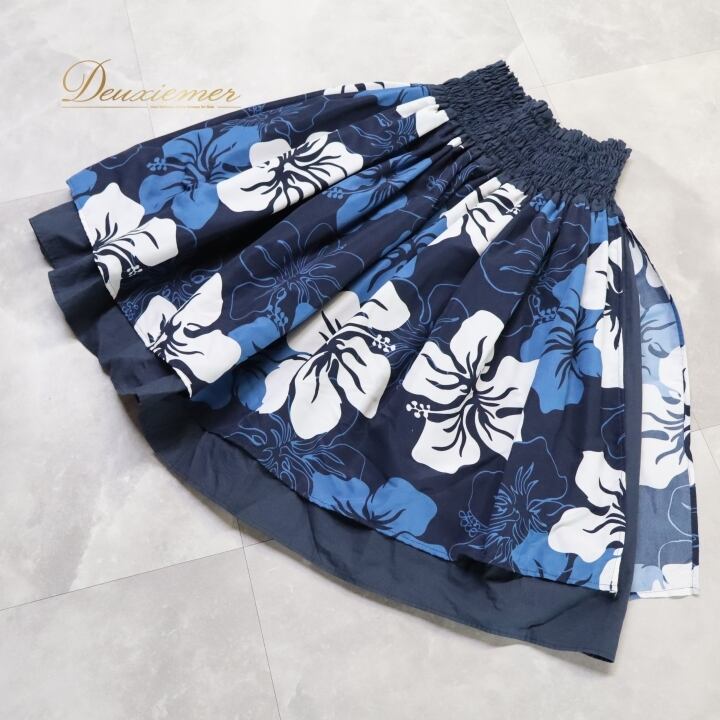 フラダンス 衣装 パウスカート ネイビー系 イチオク ハイビスカス柄 ハワイアンプリント ICHIOKU 紺 ダブル スカート フレア 軽やか ハワイアン アロハ フラ ダンス レッスン 練習 華やか 大人っぽい かわいい おしゃれ 上品 水色 白 ホワイト系 ブルー系 フルレングス スカート スポーツウェア ハワイ