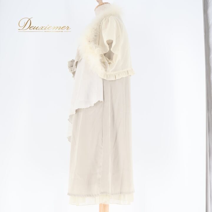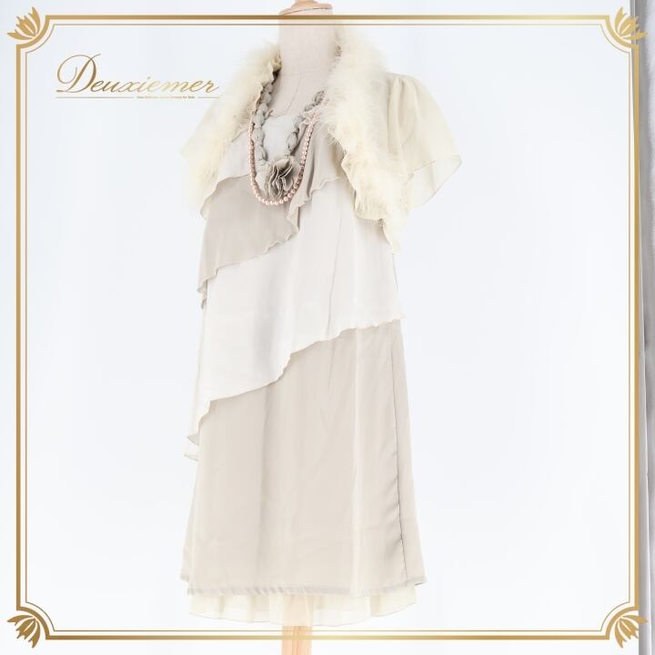 パーティドレス ワンピース ドレス グレイ系 アプレジュール apres jour グレー アイボリー くすみ お呼ばれ パーティ 発表会 フォーマル ファー レース 軽い 薄い 無地 上品 シンプル レディース お洒落 結婚式 二次会 高級感