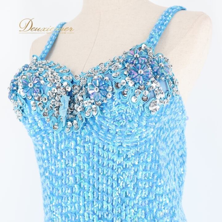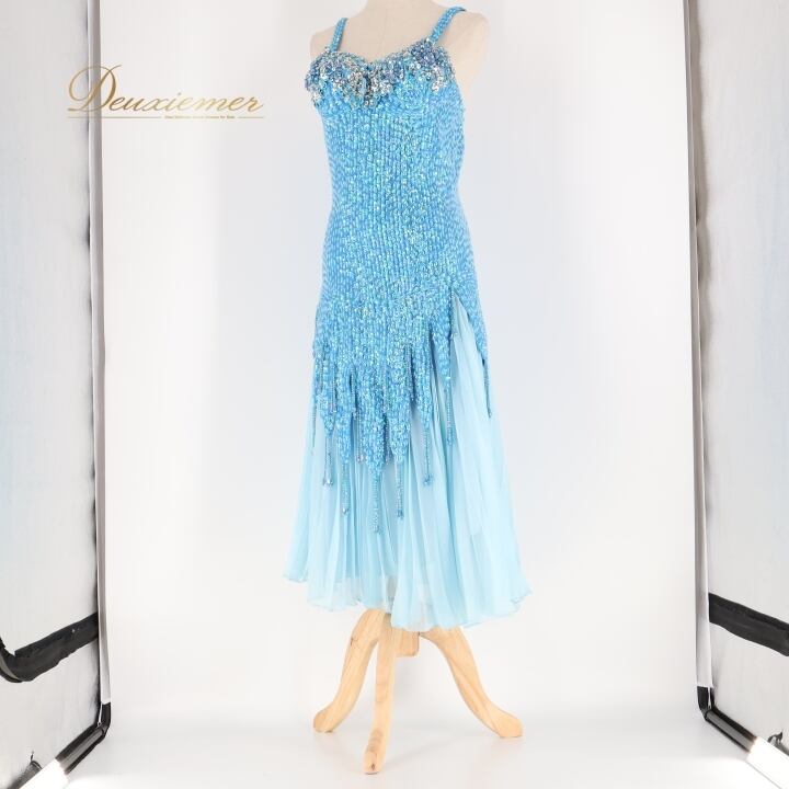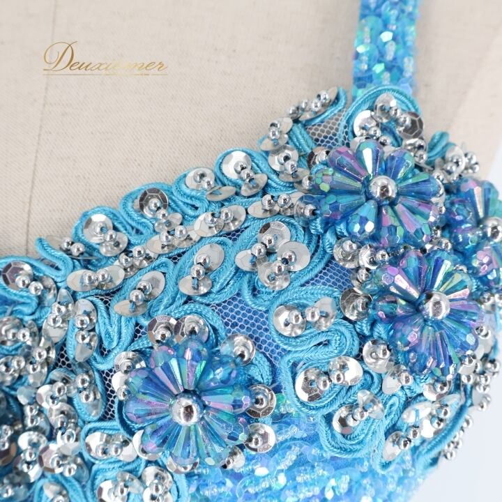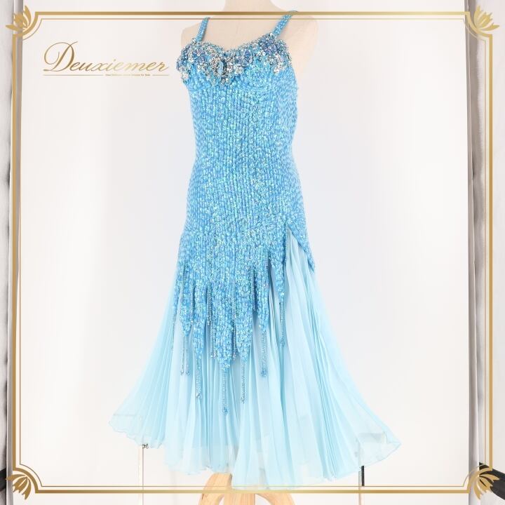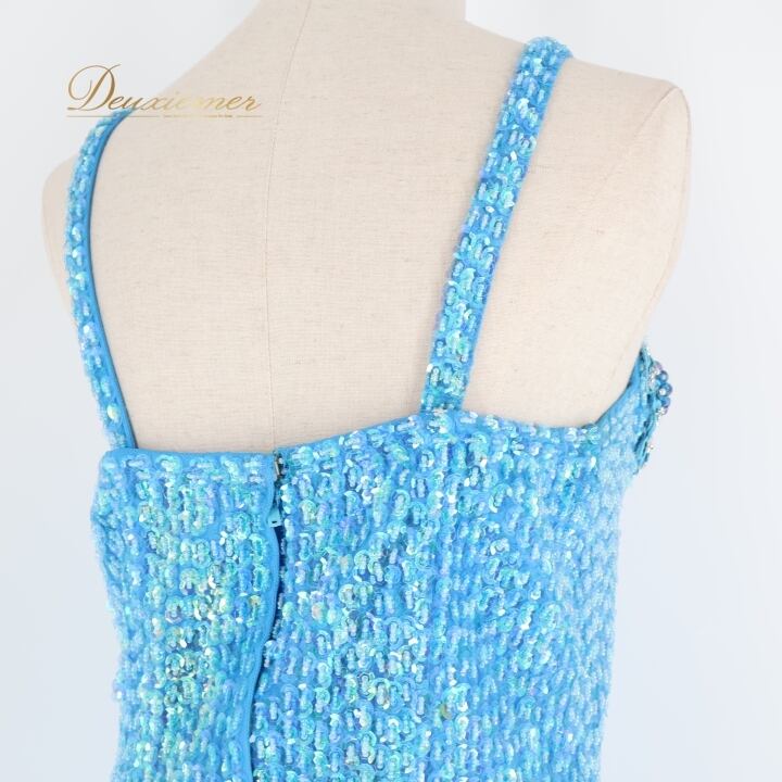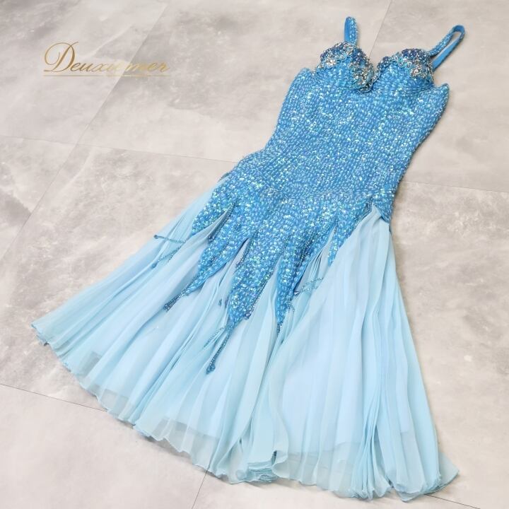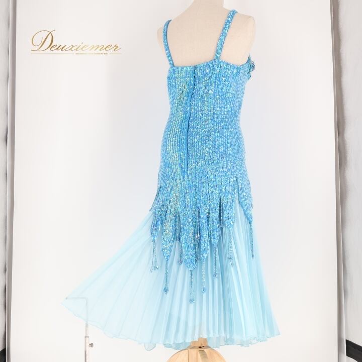 パーティドレス ワンピース ドレス ブルー系 水色 スパンコール ビーズ レース プリーツ ダンス パーティ 発表会 キャミソール 華やか おしゃれ ステージ 衣装 フォーマル ショー 女性用 かわいい