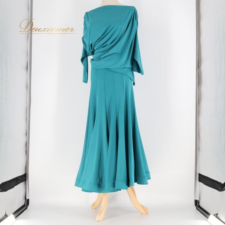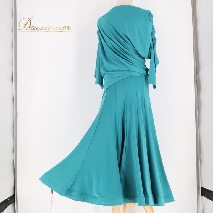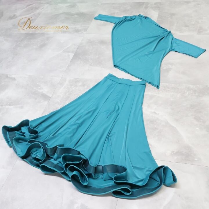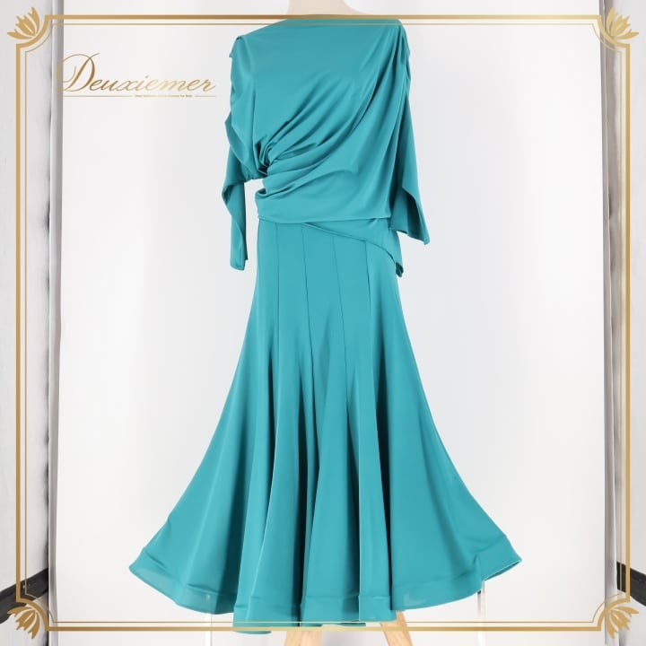 #社交ダンス #ダンス衣装 #ツーピース #セットアップ #伸縮性 #動きやすい #ファッション #ダンススタイル #お洒落 #青緑 #ウエストゴム #トルソー #ダンスウェア #女性用 #Mサイズ #ダンスパフォーマンス #ダンスライフ #身体を動かす #エレガント #ENUTSU